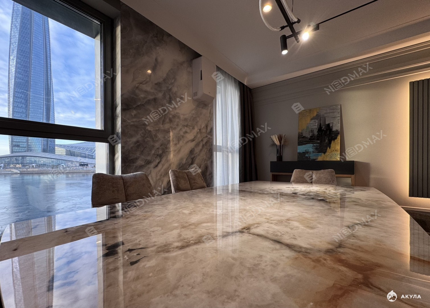 Предлагается в аренду на длительный срок уникальная видовая четырехкомнатная квартира (абсолютно новая) 169, 3 м2 в клубном комплексе элит класса Lahta Plaza на берегу Финского залива в Приморском районе по адресу: Приморский проспект, дом 78, корпус 5 в 15 мин. ходьбы от ст. метро Беговая. Самый тихий корпус комплекса.