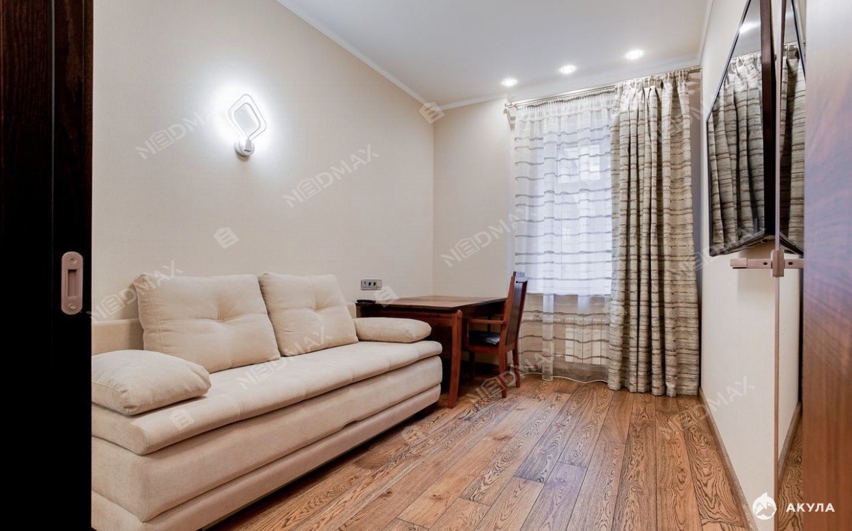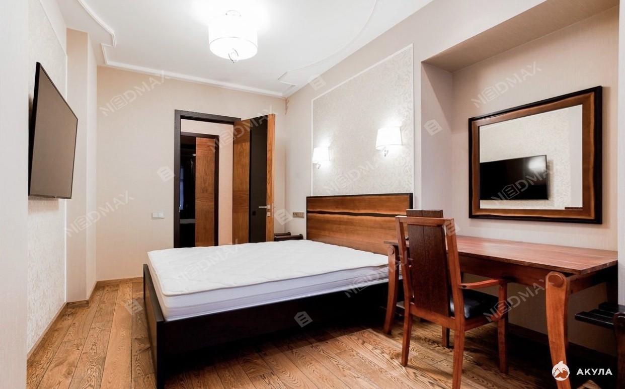 Планировка квартиры включает в себя: кухню-гостиную, спальню, две комнаты свободного назначения которые можно использовать под кабинет, детскую и комнату для гостей, большая вместительная гардеробная комната, два санузла, сауну. Есть парковка во дворе. Обязательная уборка раз в неделю+15000 рублей