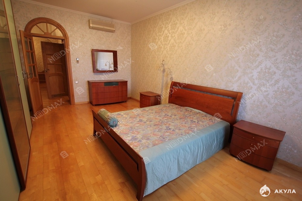 Две спальни, кабинет, гостиная, два совмещенных санузла с душевой и джакузи также есть сауна.