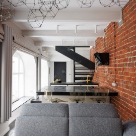 Арт. 125196839 LOFT. Парковка во дворе Предлагается в аренду уникальная двухуровневая квартира с дизайнерским ремонтом в центре города, на ул. Лабутина, д.31. «Особняк М. Д. Тибенкова» Квартира очень светлая за счет арочных окон. На первом уровне расположены гостевой санузел, кухня...