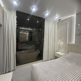 Арт. 125800820 Дизайнерская квартира с видом на парк и озеро. ЖК Пять звезд. бизнес класс Предлагается в аренду на длительный срок стильная квартира с панорамным остеклением и видом на парк и озеро в престижном комплексе бизнес класса "Пять Звезд" в Калининском районе по...