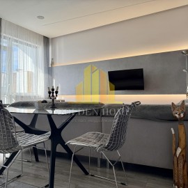 id:7504. Сдаётся стильная квартира с дизайнерским ремонтом в ЖК «Новый Город» на длительный срок. Квартира полностью укомплектована: техника Kuppersberg, Neff. Сердце квартиры — светлая кухня-гостиная, с удобной мебелью и прекрасным видом на город. В спальне вас ждет...