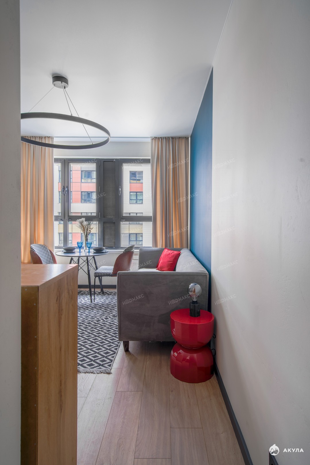 Каждый квадратный метр квартиры использован с умом. Отличное зонирование.