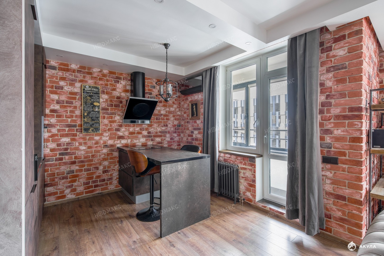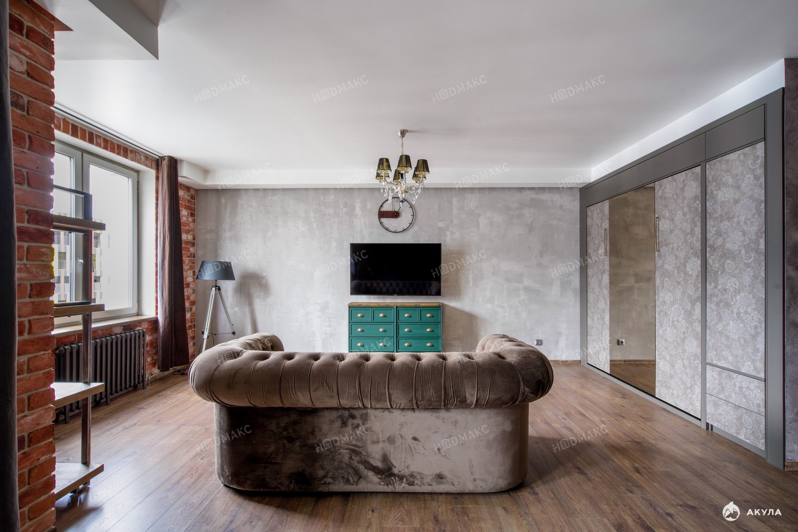 Квартира выполнена в стиле LOFT, просторная планировка, выделенная зона кухни, отдыха и сна.