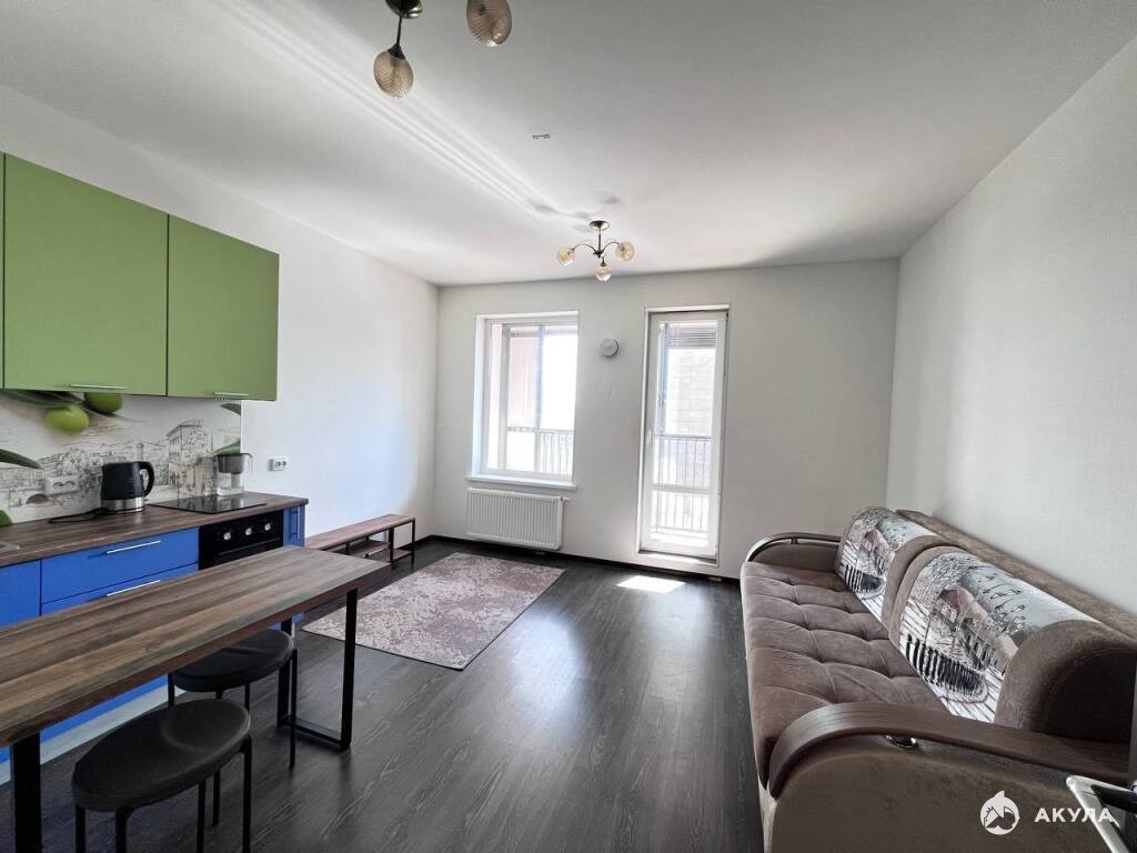 Квартира оборудована всей необходимой мебелью и техникой: стиральная машина, вместительный шкаф, удобный двуспальный диван, современный кухонный гарнитур, холодильник, вытяжка и электрический чайник. Всё это создаёт атмосферу уюта и домашнего тепла.