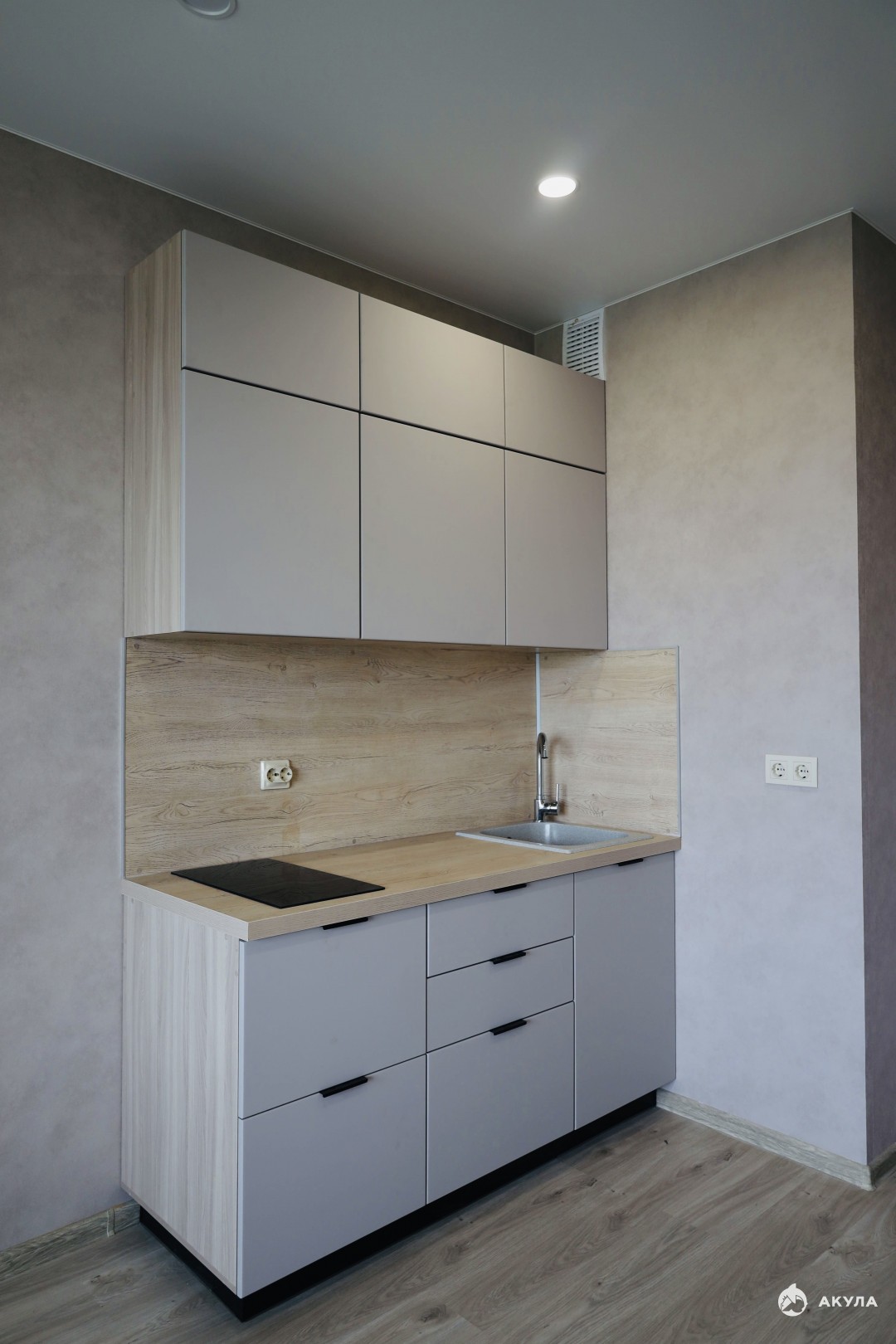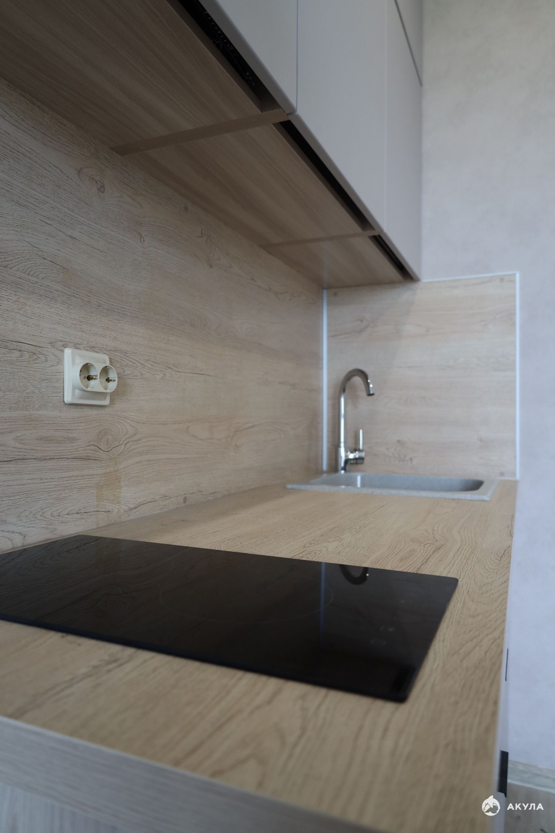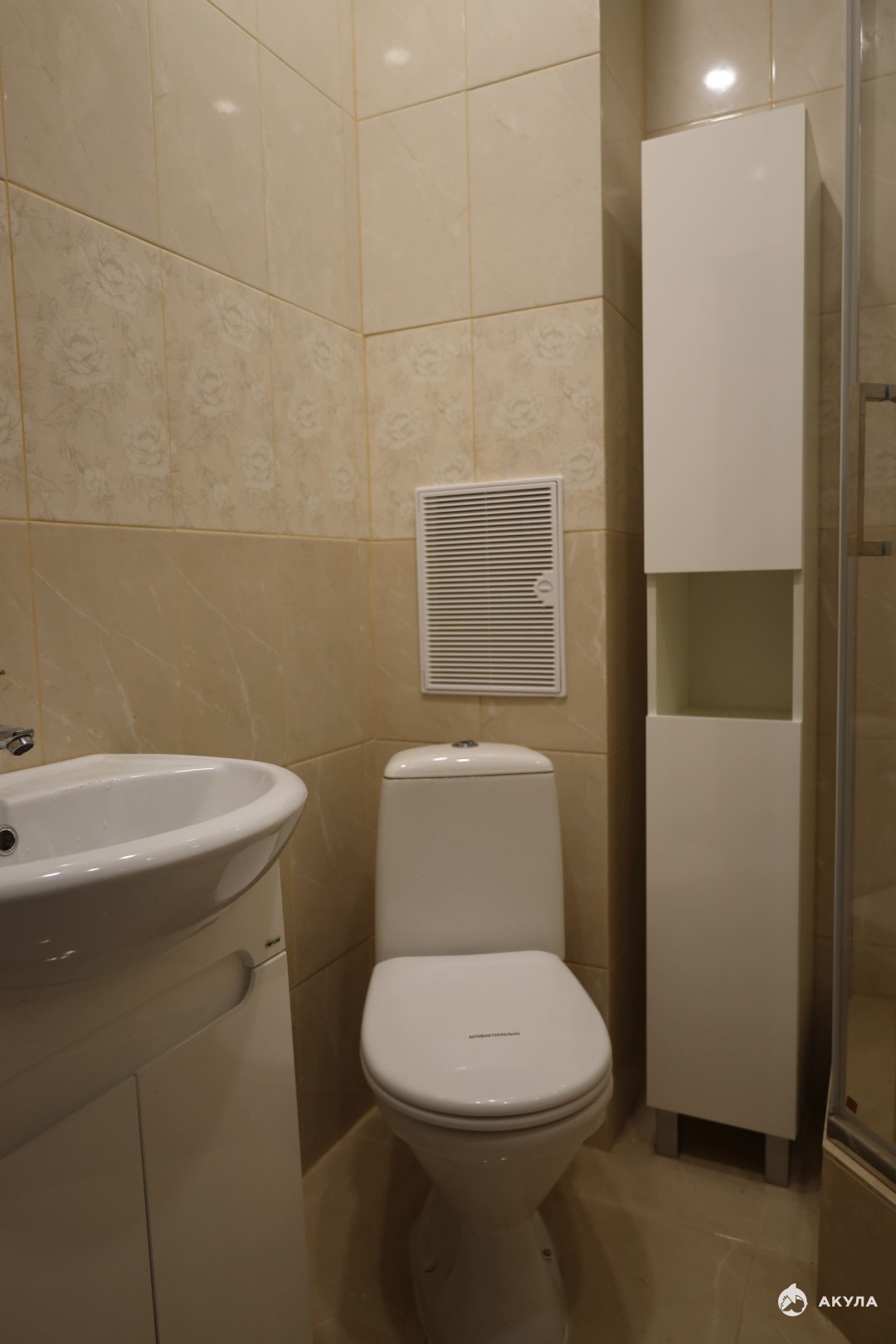 Установлена новая качественная кухня со встроенной варочной панелью. В ванной комнате душевая кабина с подиумом, уложенным плиткой, также электрический полотенцесушитель, раковина и 2 шкафчика-пенала. Куплена новая стиральная машина и новый холодильник, гардеробный шкаф, обеденный стол, диван-кровать(двуспальный).