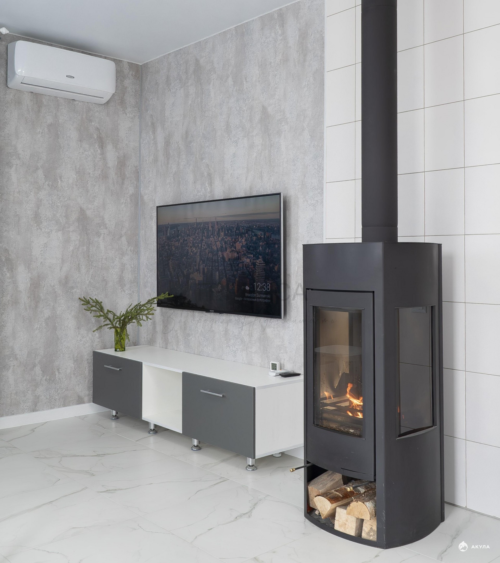 Отопление – электрическое. Установлен электрический котел. Тёплые водяные полы, дровяной камин, кондиционер с тепловым насосом, радиаторы. Управление отоплением со смартфона.