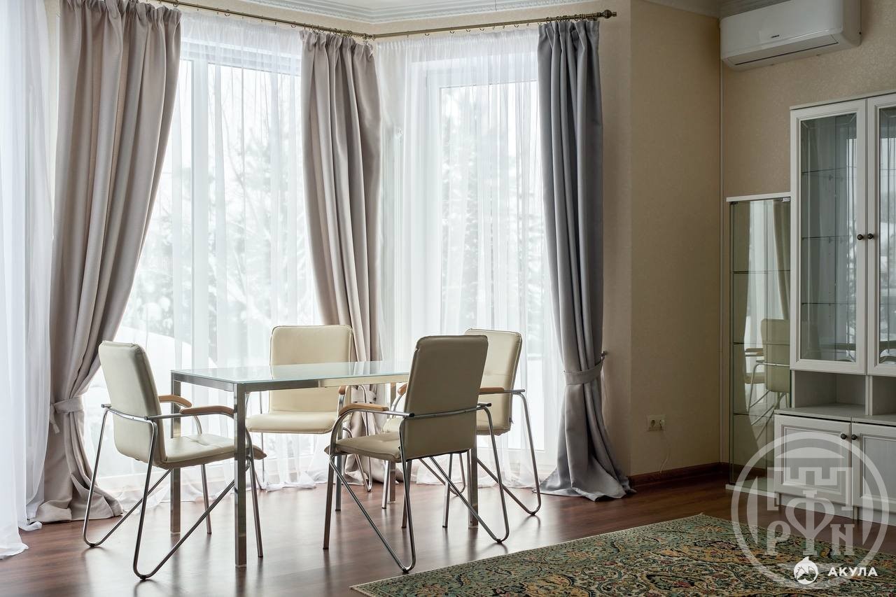 Площадь жилой застройки 202.4 кв.м. Основной дом 146, 4 кв.м, двухэтажный. На 1 этаже: просторная прихожая, кухня-гостиная, спальня и санузел с тёплым полом. На 2 этаже -три комнаты. Дом очень светлый за счет панорамного остекления, просторных эркеров гостиной и хозяйской спальни с видом на свой зеленый двор. Дом построен на ленточном фундаменте, стены из газобетона с утеплением и фасадом из клинкерной плитки, покрыт мягкой кровлей. Второй дом : 56 кв.м, фундамент - плита. В доме кухня-гостиная, 2 спальни и туалет.Отопление - водяной тёплый пол. Оба дома с хорошей мебелью и современной бытовой техникой.