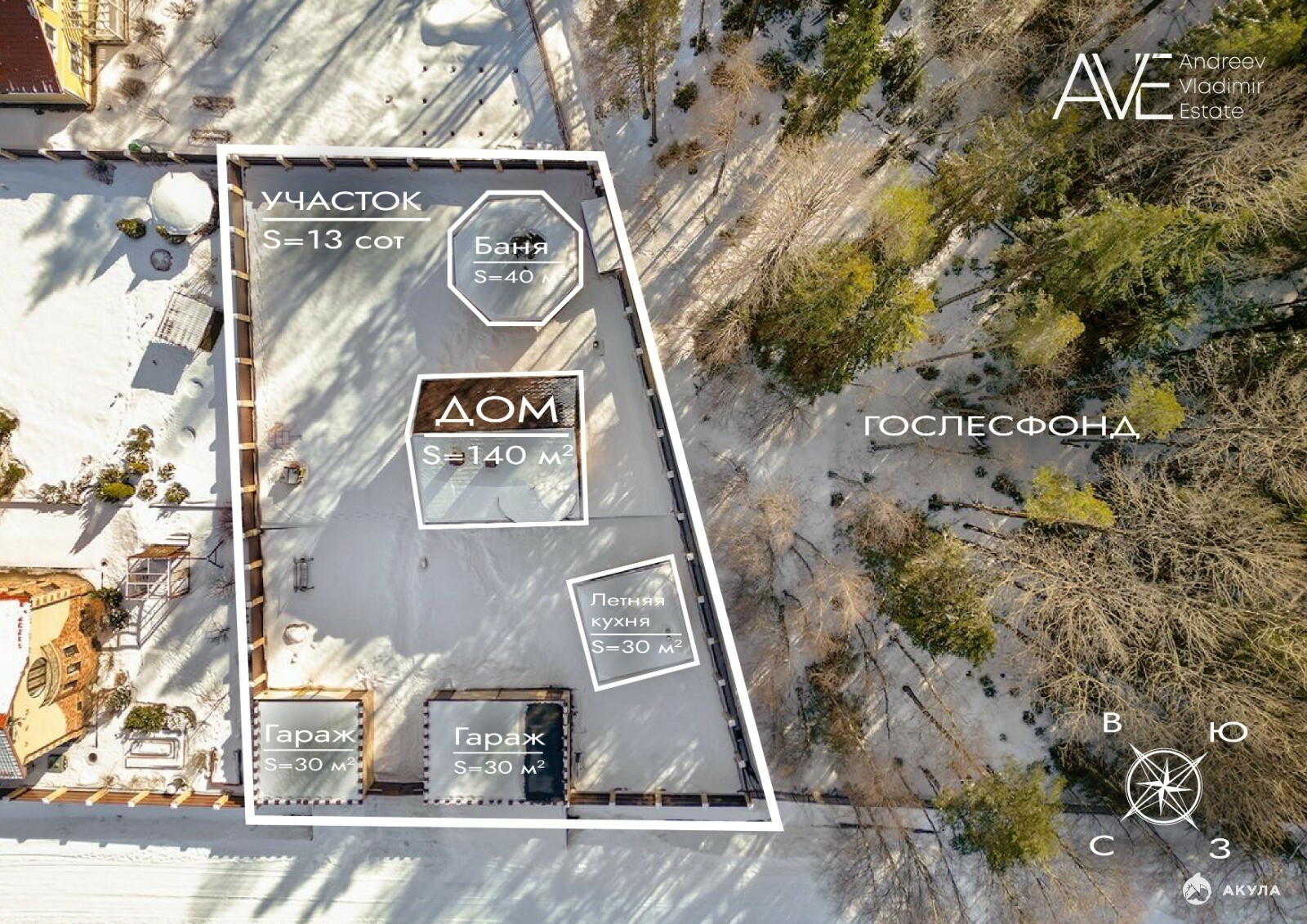 Дом расположен на границе с Лесфондом, с участка сделан собственный выход в лес.