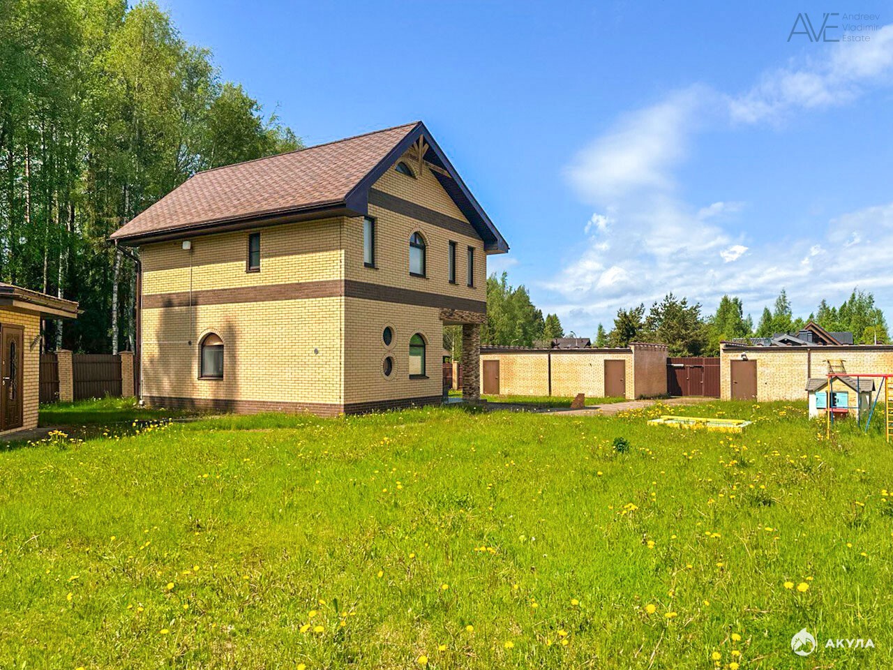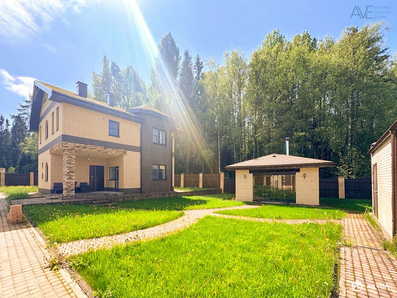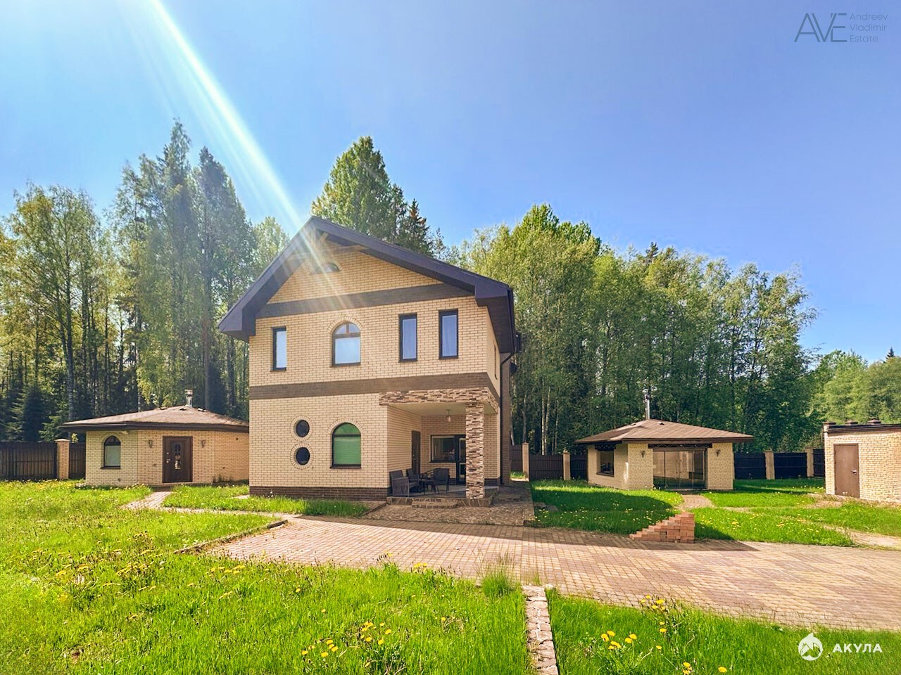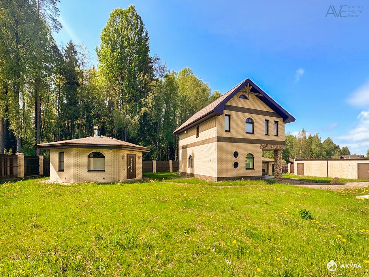 Арт. 89599266. Продаётся кирпичный дом для круглогодичного проживания с двумя гаражами, летней кухней и отдельно стоящей баней на границе с лесом.