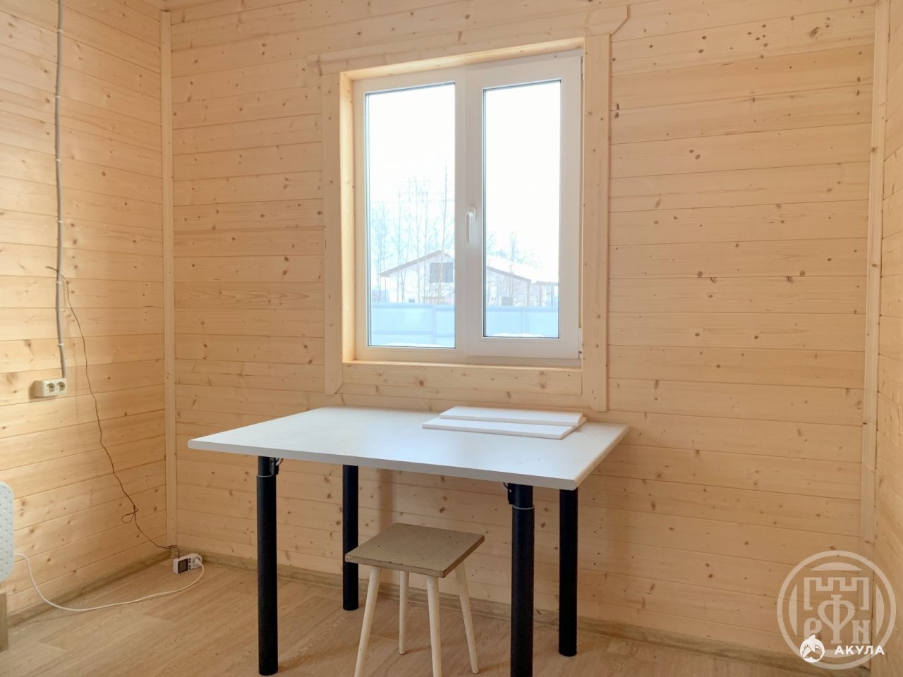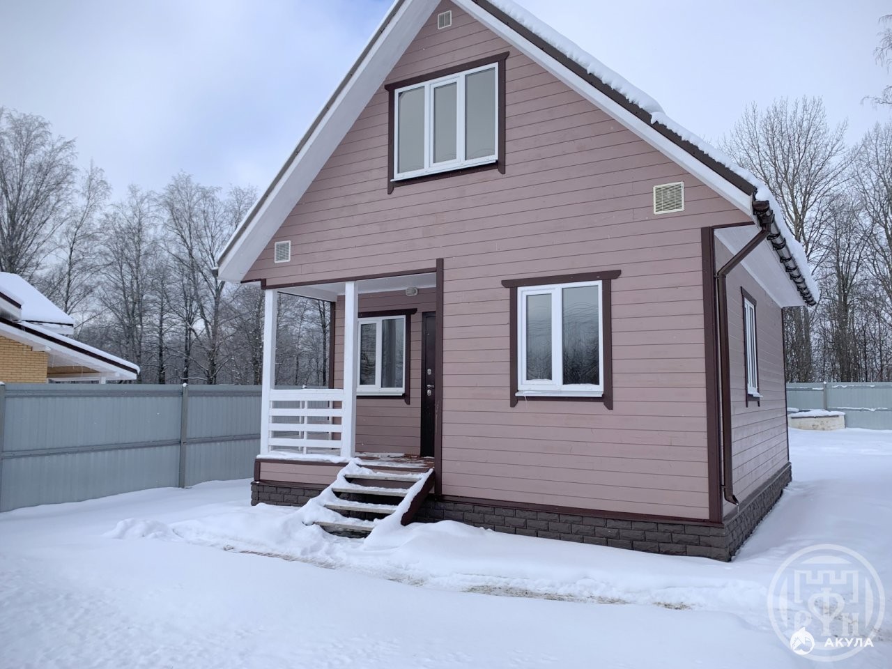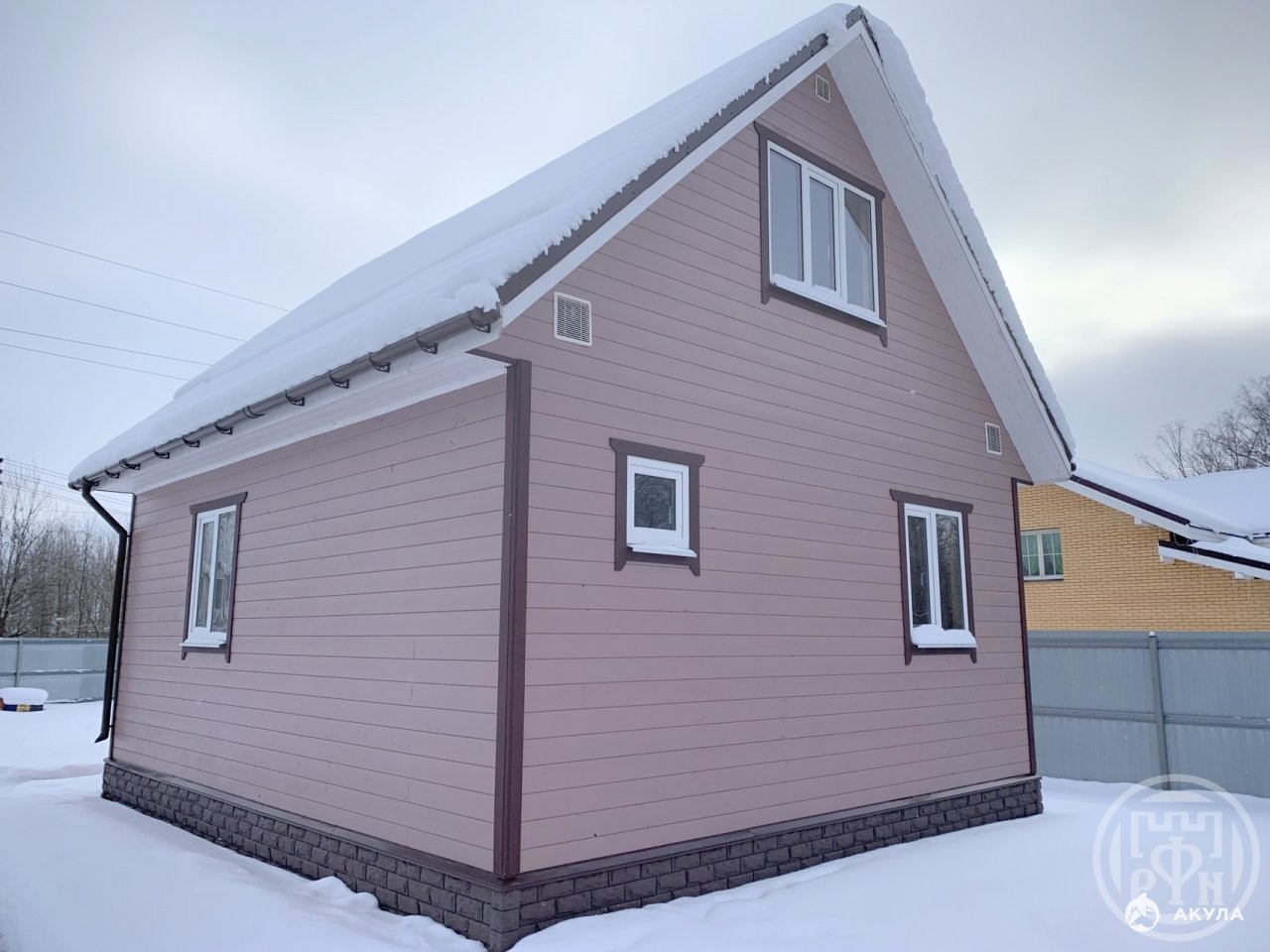 Отделка фасада: Имитатор бруса. Отделка внутри: Вагонка. Фундамент: Сваи, выполнена отмостка.