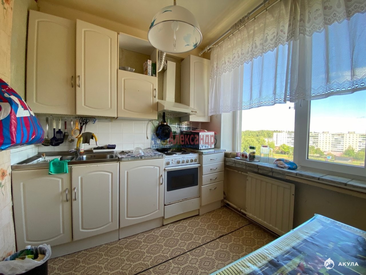 Удобная планировка, окна выходят на три стороны. Две спальни раздельные 9, 1+10, 8м2 и две комнаты смежные: зал 17, 9+ спальня 11м2. Все окна стеклопакеты. Из кухни и трех комнат открывается замечательный вид на стадион и зелень верхушек деревьев.