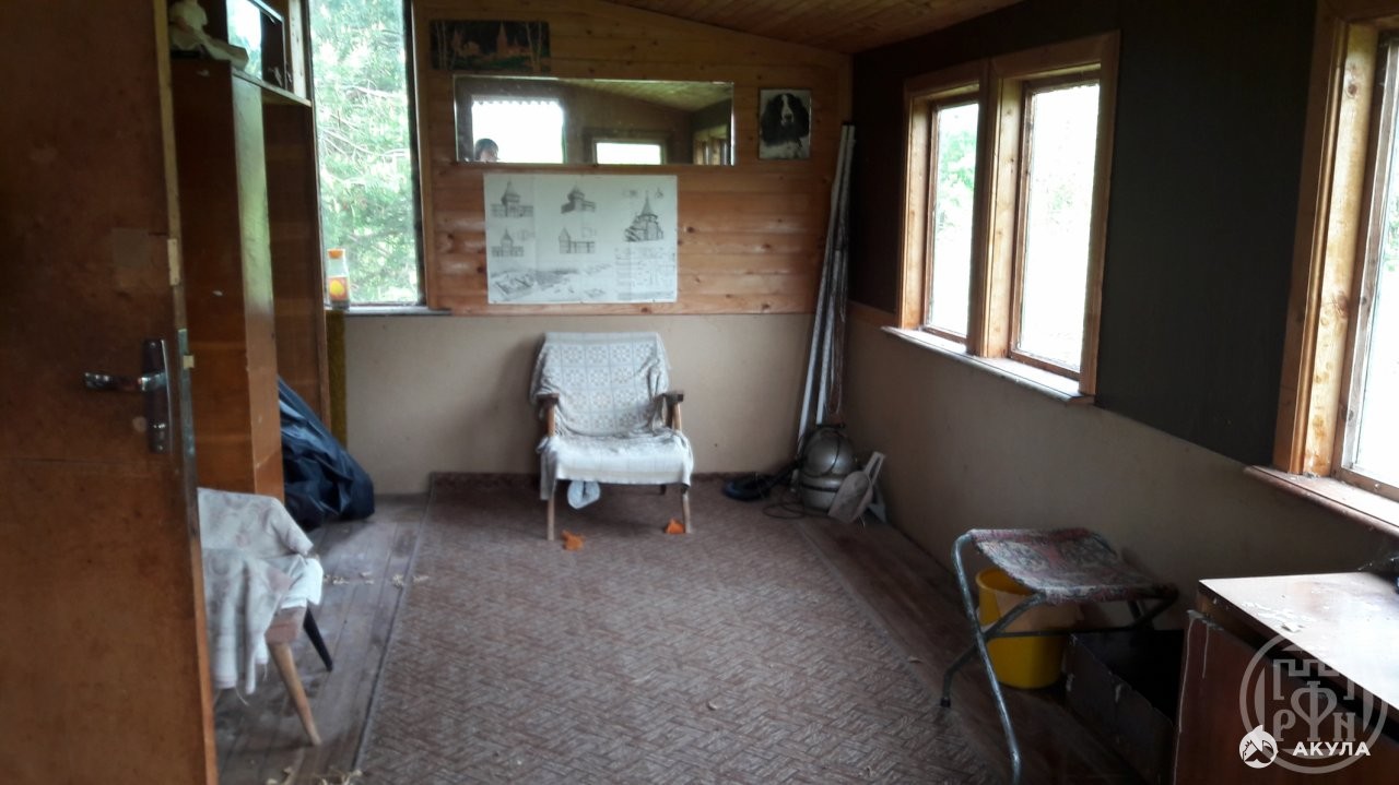 На участке 2 дома - зимний из бревна, обшит вагонкой (5*7, общ. пл. 35 кв. м, печное отопление) и