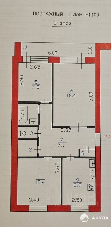 Изолированные комнаты - 16, 4 кв.м, 12, 4 кв.м, 7, 8 кв.м