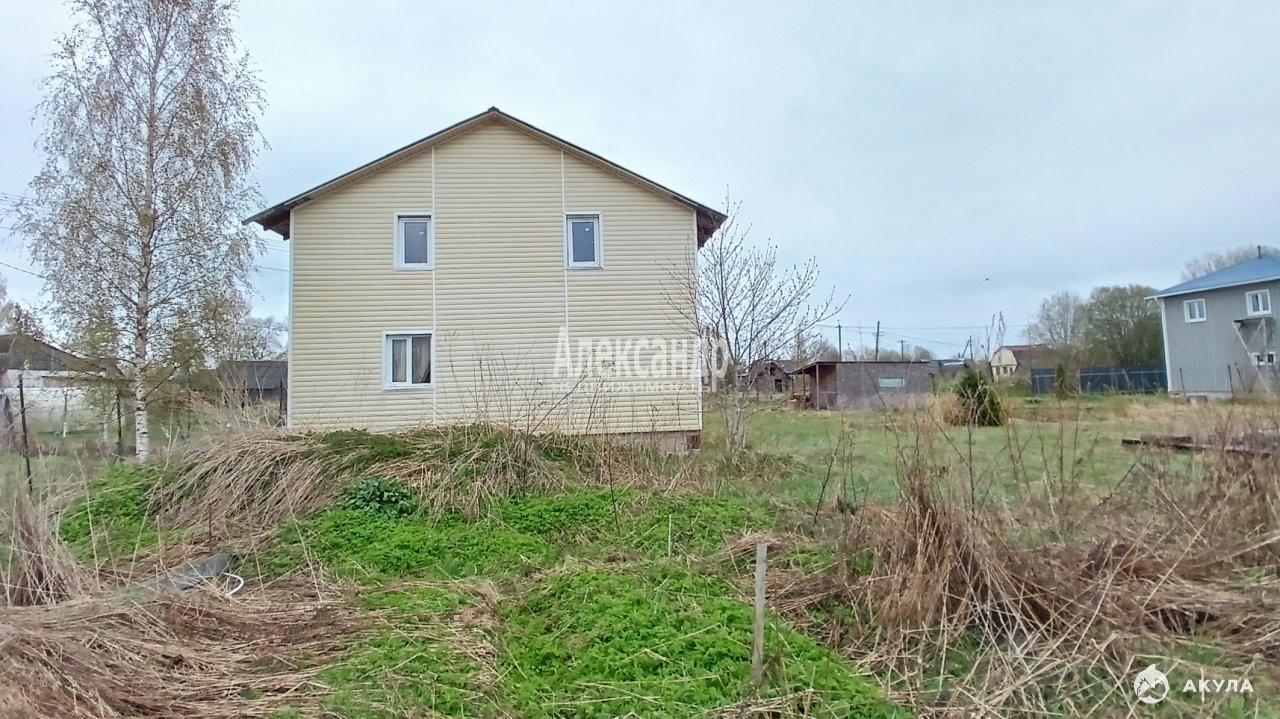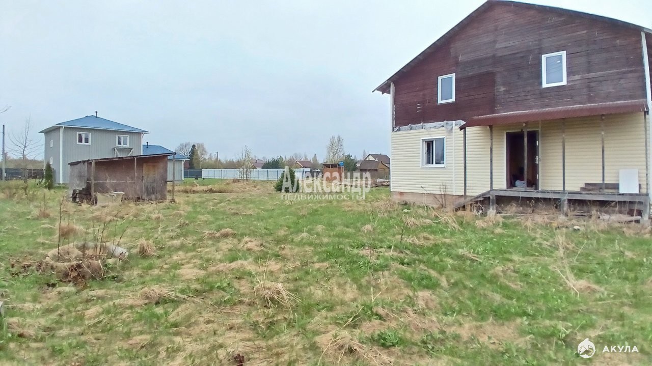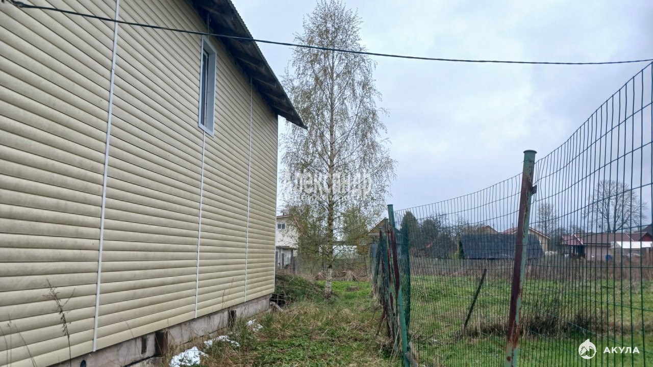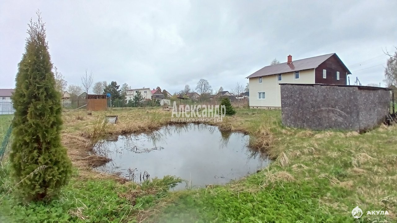Участок с домом расположены на 2й береговой линии от реки Волхов, всего в 400 м от воды. Разработанный участок правильной формы огорожен забором из металлической сетки с распашными воротами. На участке имеются плодовые деревья и кустарники, шикарная ель, пруд, сарай, туалет, летний душ, установлен мангал.