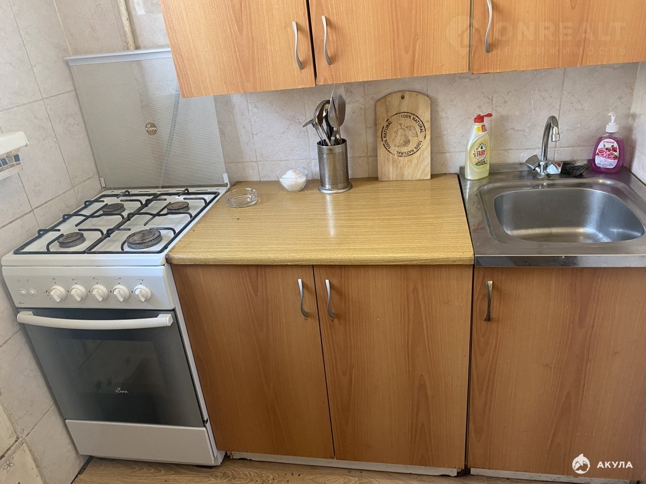 Полностью оборудованная кухня: холодильник, плита с 4 конфорками, духовка, микроволновка, электрический чайник, небольшой набор посуды.