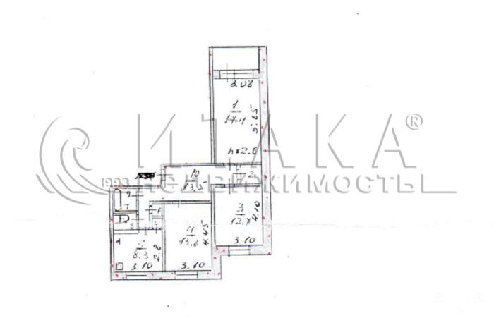 комнаты –17, 4 + 13, 8 + 12, 7 кв.м