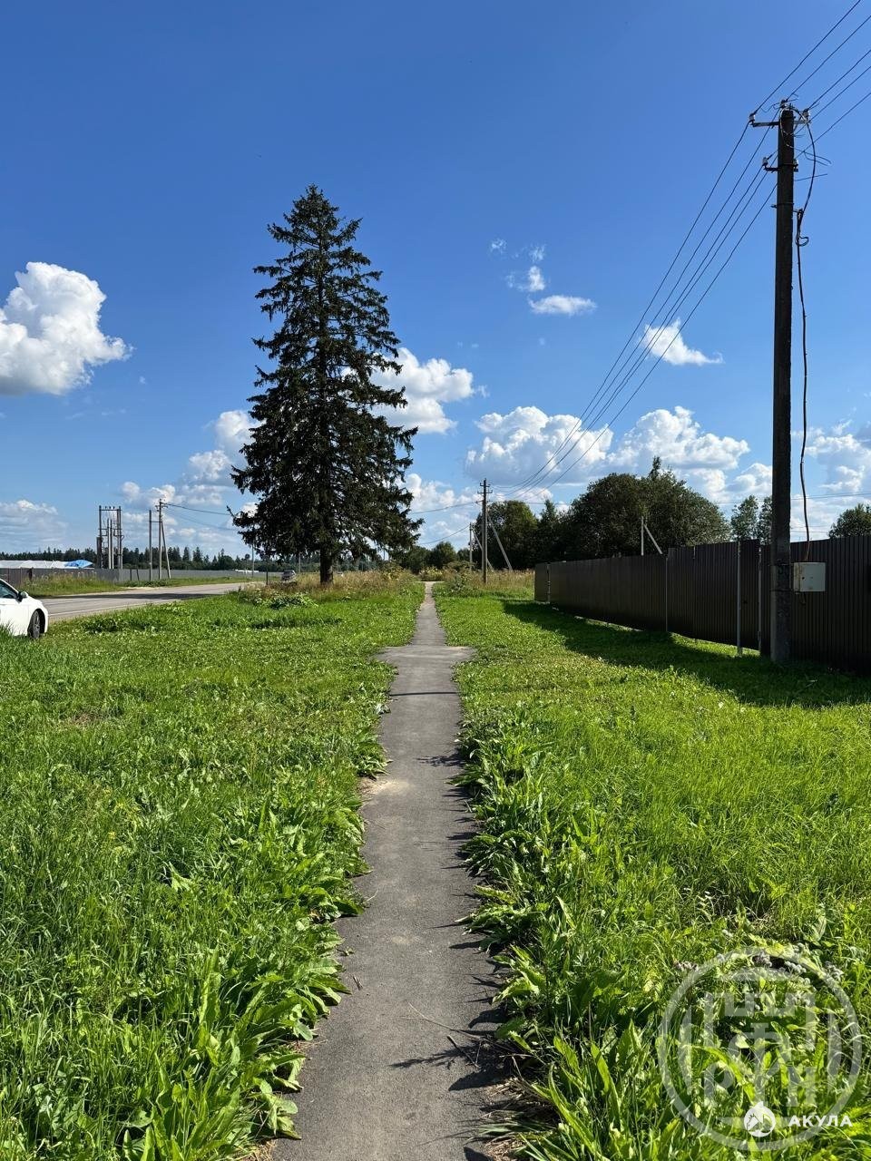 Свет и газ проходят вдоль участка.