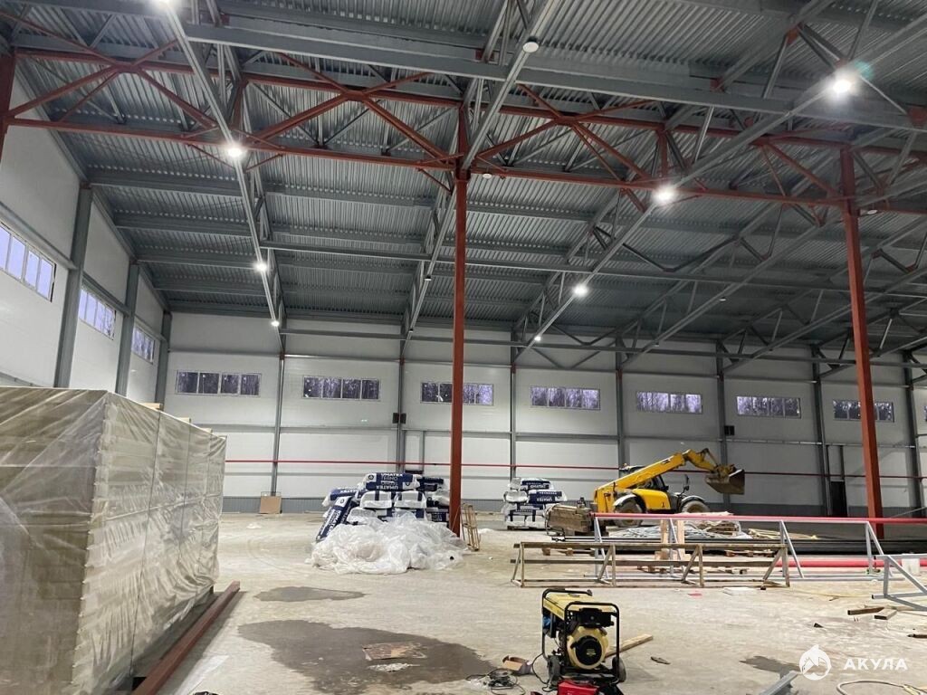 Высота потолков – 11 метров (до ферм – 7.4 метров), идеально для высоких стеллажей и производства