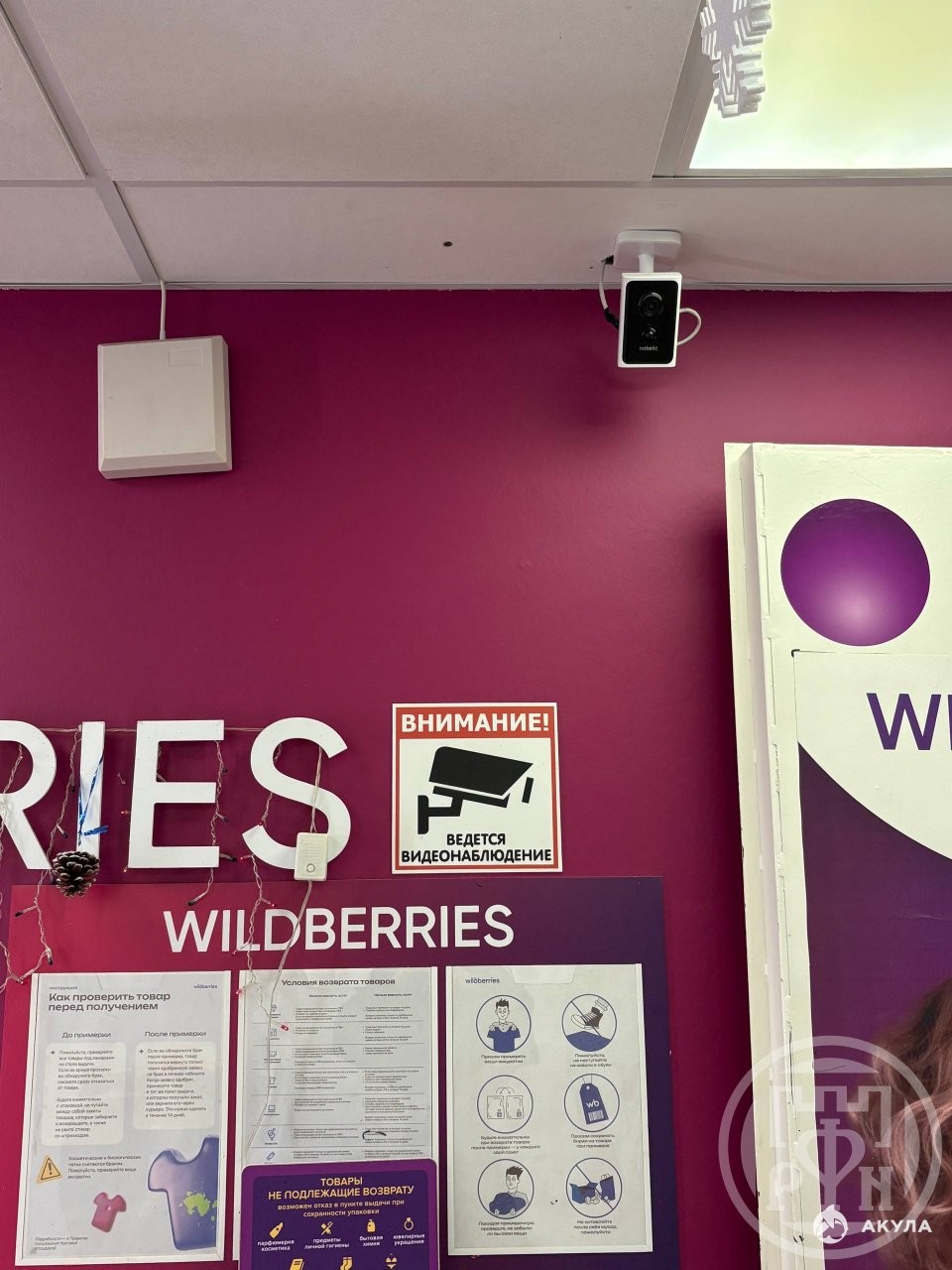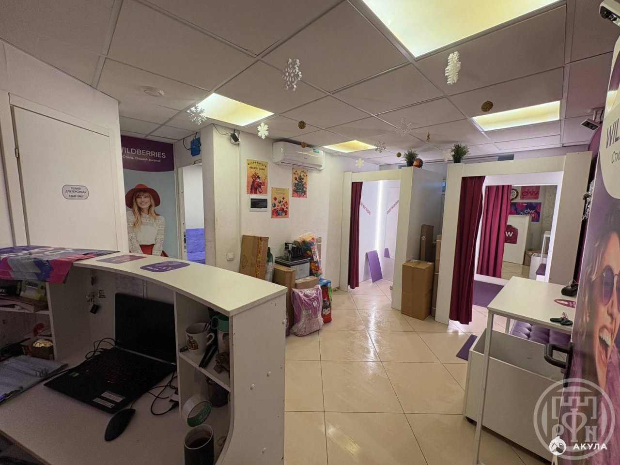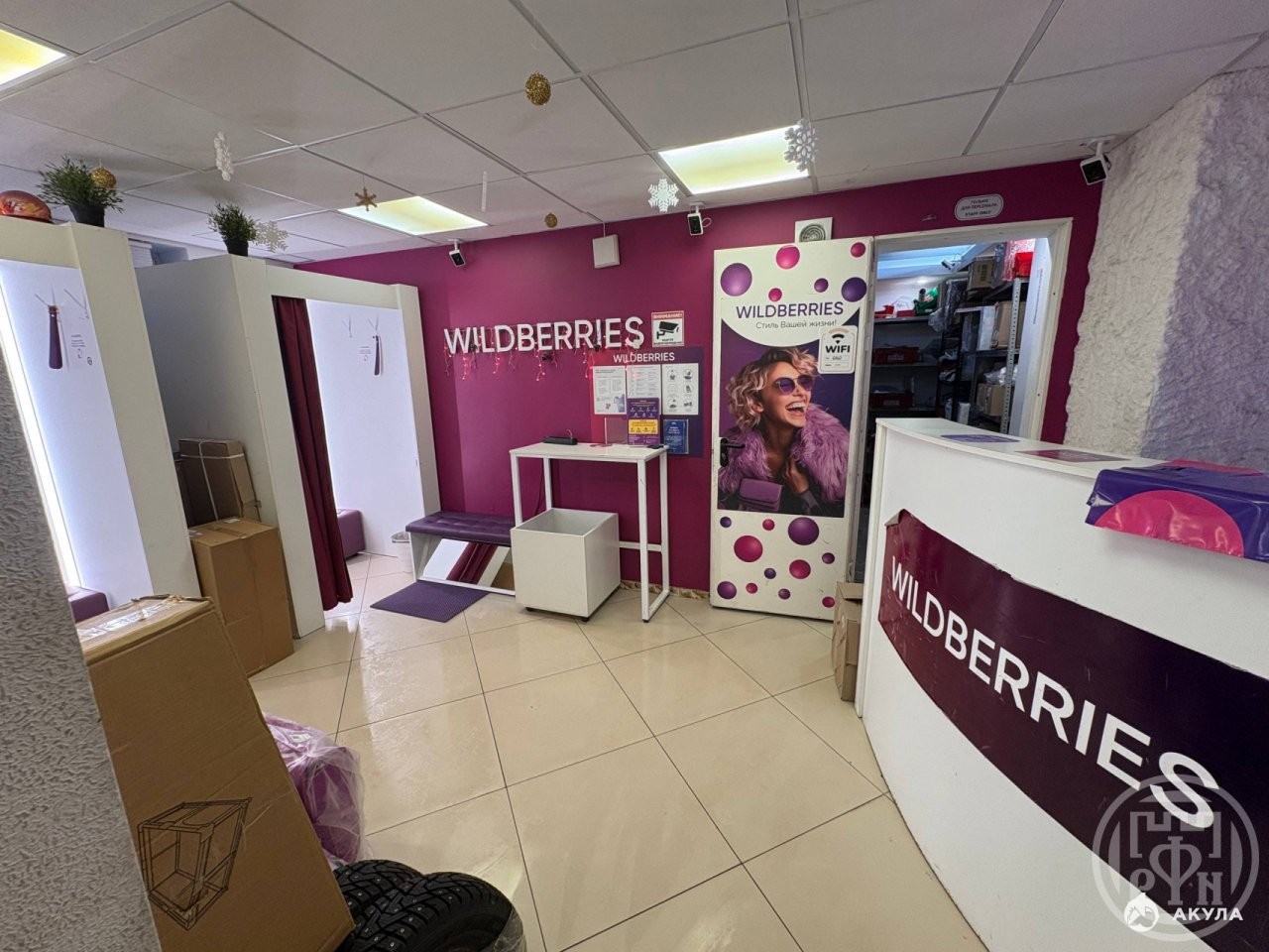 Ёмкость склада 600+ ячеек, стол проверки заказов, 2 примерочные, детский уголок, зона ожидания с диваном. Пункт оборудован 2 камерами в клиентской зоне и 1 на складе, запись экрана на ПК, облачное хранение 90 дней. Имеется санузел и кулер с горячей и холодной водой.
