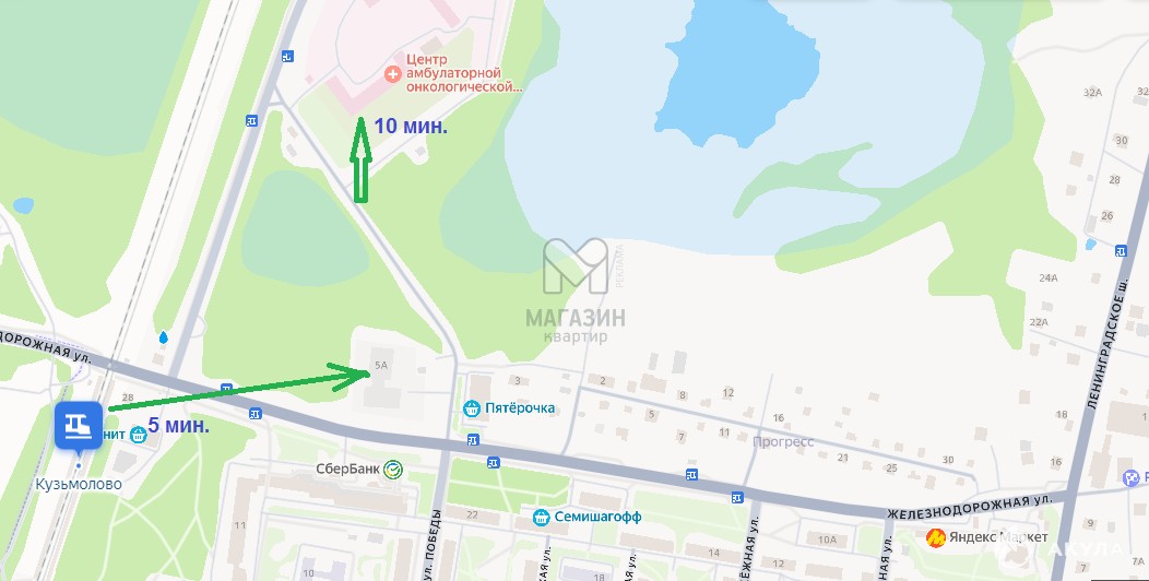 До ЖД станции «Кузьмолово» можно добраться за 5 минут пешком,