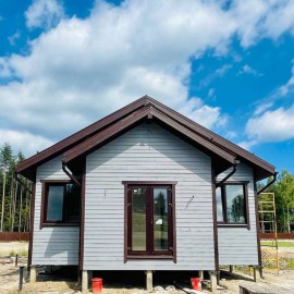 Продается дом в коттеджном посёлке рядом с Кудрово и Петербургом. Каркасный дом 122 м2. 3 спальни, кухня-гостиная, 2 с/у, сауна, терраса, котельная, панорамные окна. Фундамент - монолитная плита (теплый пол), материал стен - сухая строганая доска, крыша - металлочерепица, фасадная...