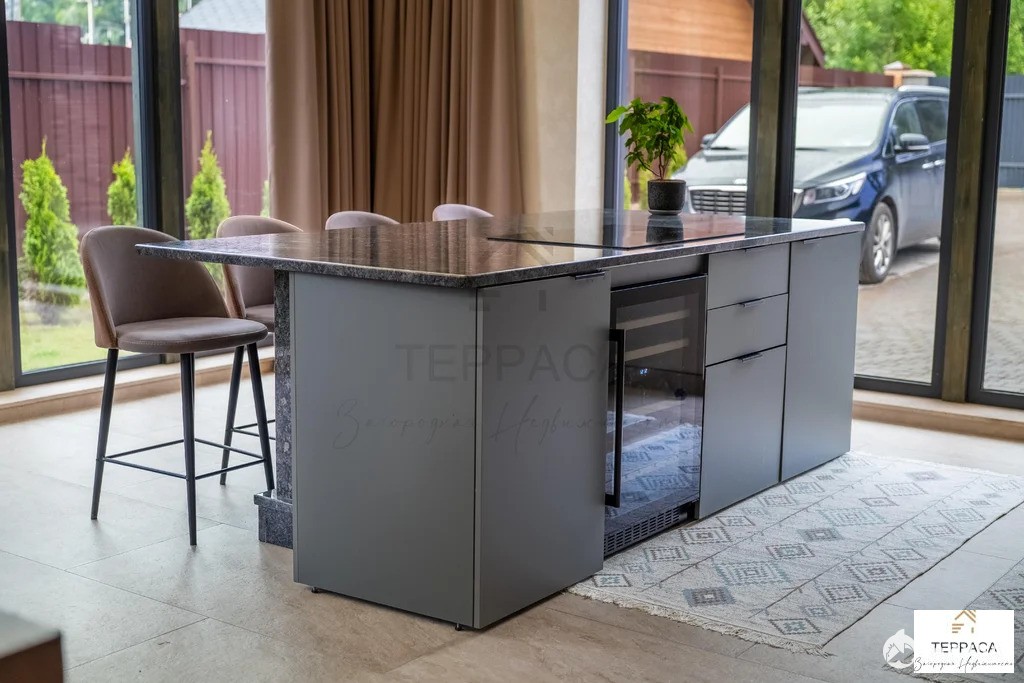 1 этаж – кухня-гостиная с выходом на террасу, изолированная комната, гардероб, котельная, прихожая, холл, с/у.