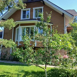 №343761 Всеволожский р-н, д. Кискелово, СНТ `Сосновая поляна`, 30 км от м. Парнас. Продается двухэтажный дом из оцилиндрованного бревна, общей площадью 100 кв.м. Размеры дома по фундаменту - 6м х 10 м. + закрытая веранда (мягкие окна) 3м х 6м, и открытая терраса 3м х 8, 5м. Год постройки дома...