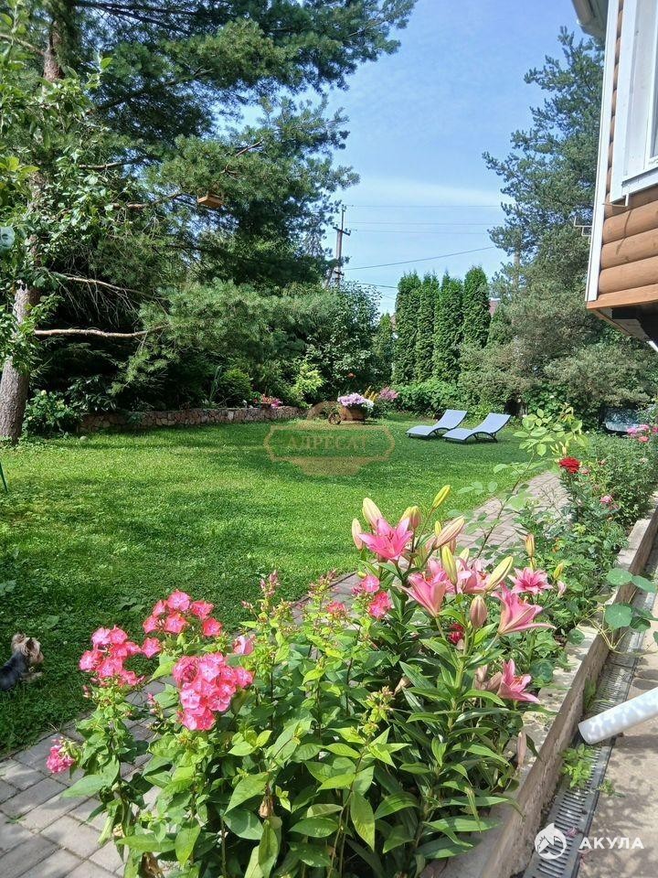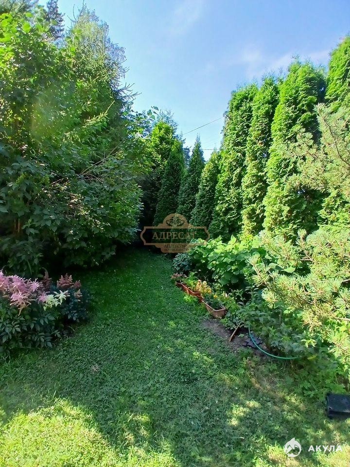 Участок утопает в зелени и окружён со всех сторон высокими туями, елями и соснами, что создаёт атмосферу приватности и релакса. На территории есть проточный пруд с практически ручными взрослыми карасями, несколько садовых плодоносящих деревьев и кустарников, а также небольшая теплица.
