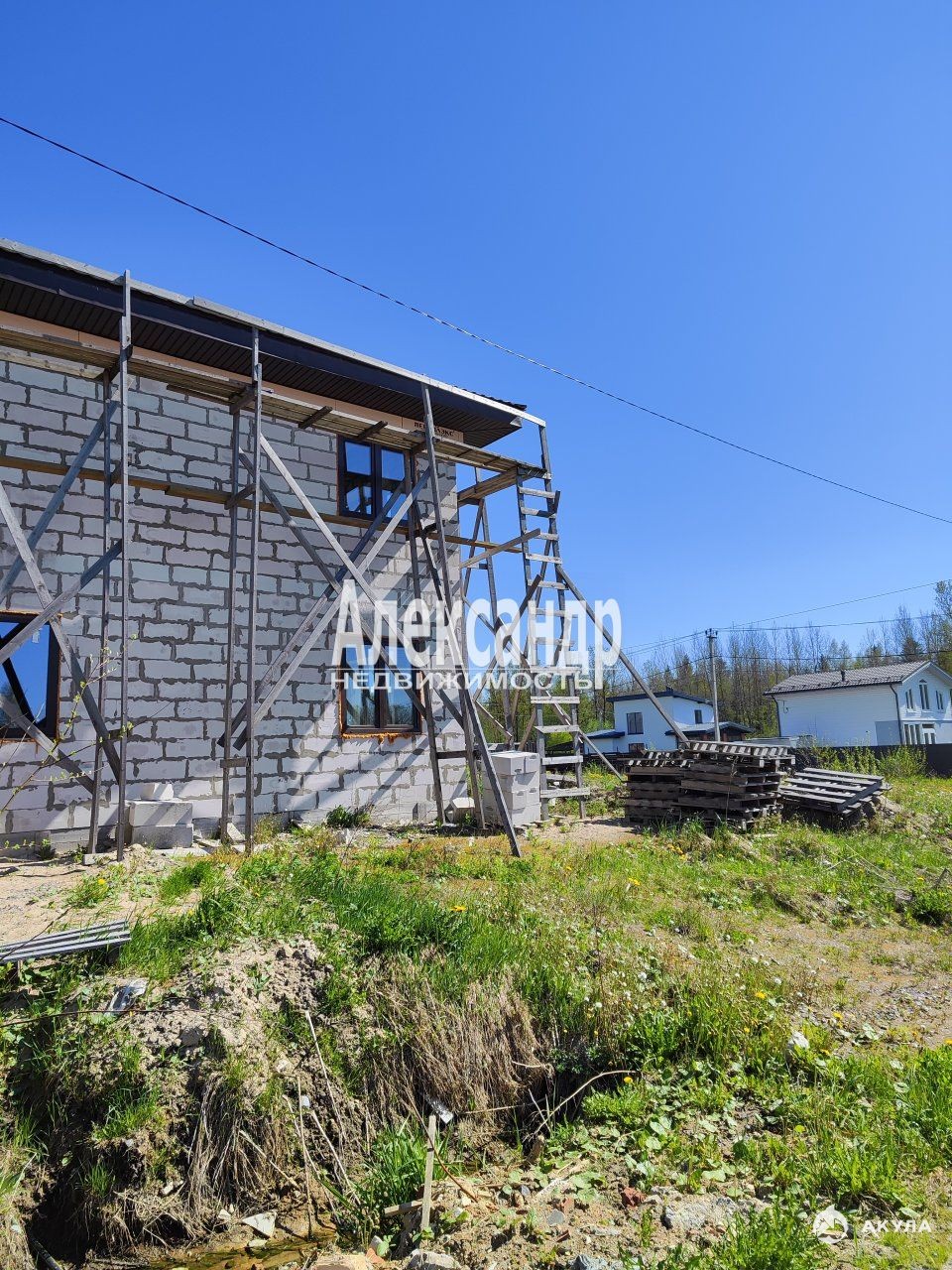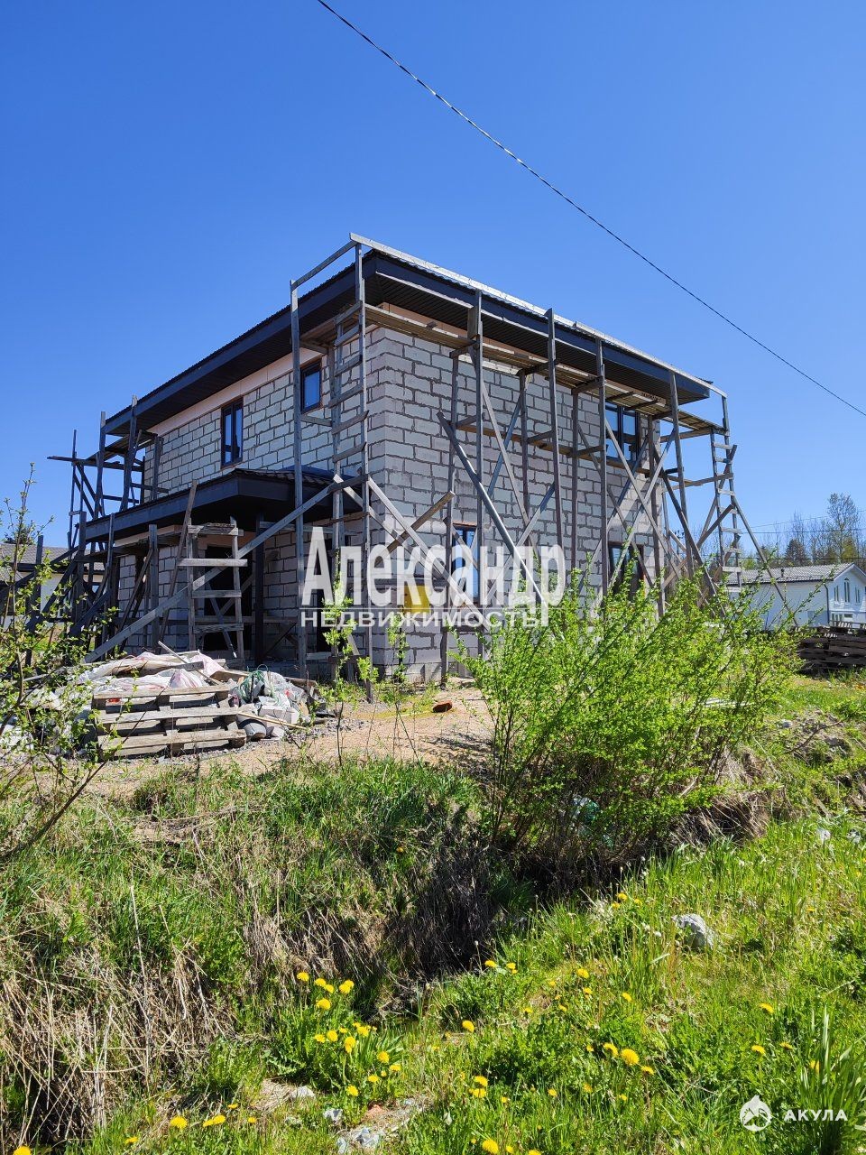 1702489 Предлагаем к продаже дом с участком. Участок сухой выровнен, отсыпан и утрамбован более чем на один метр, сделан заезд вкопана труба. Дом (Свободная планировка) строился с использованием последних технологий: плита 40 см, модифицированный газобетон, крыша металлочерепица, заведен газ, временные батареи для обогрева дома. Электричество 15 квт (есть возможность увеличения квт), столб по границе на 3 участка.
