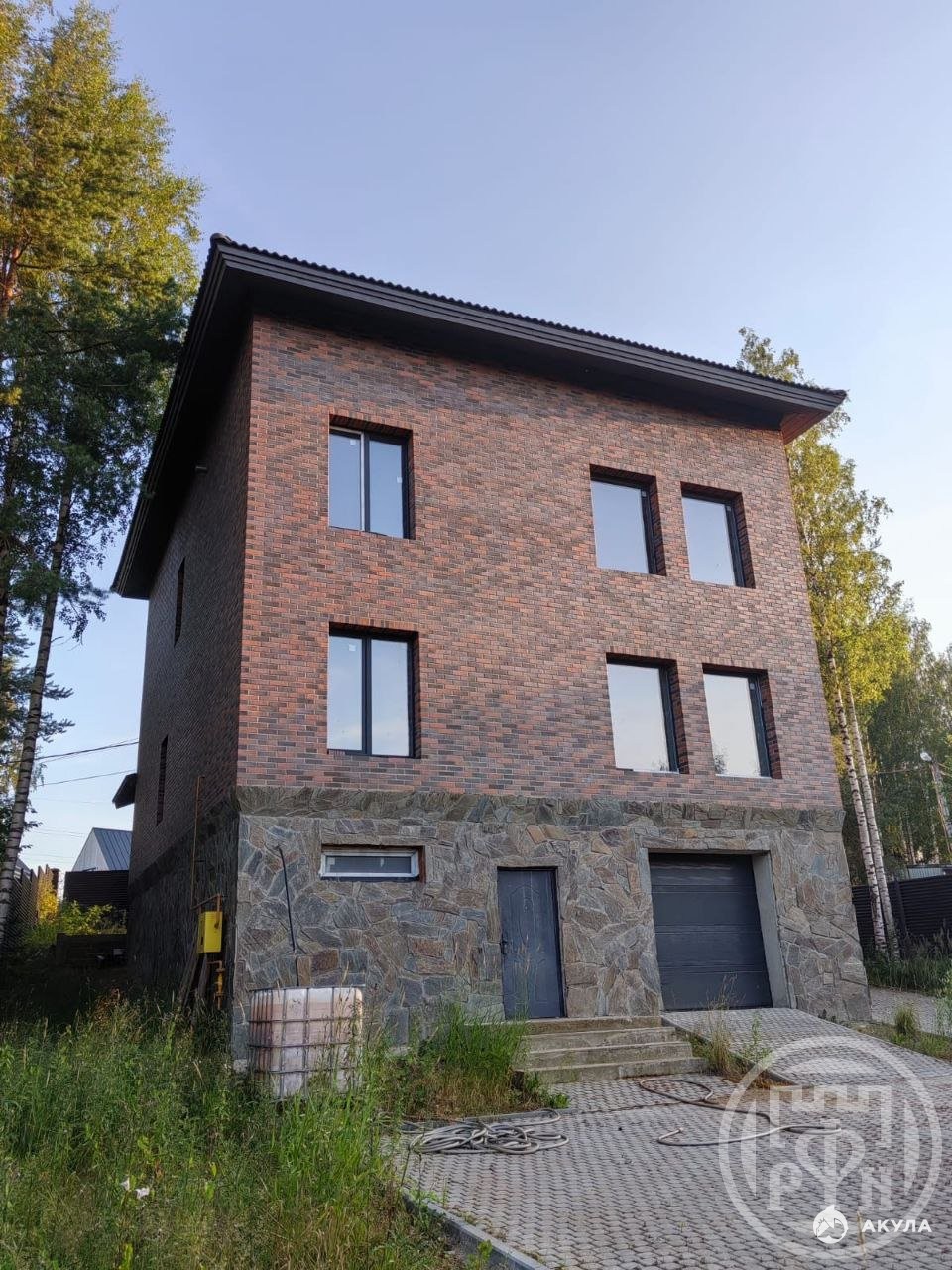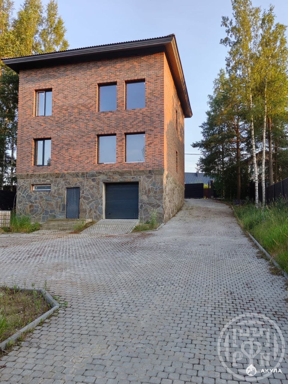 1 этаж: кухня-гостинная с панорамным остеклением, комната, с/у, кладовая. 2 этаж: четыре комнаты, два с/у. Мансарда: жилое помещение 100кв.м. Все инженерные коммуникации: газ, отопление, вентиляция, водопровод, электричество 15кВт, канализация. Готовность под чистовую отделку. Участок 7 соток, собственность. Выполнено благоустройство, мощение брусчаткой. Огорожен забором с воротами. Набережная реки Охта -20 метров.