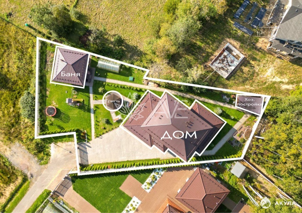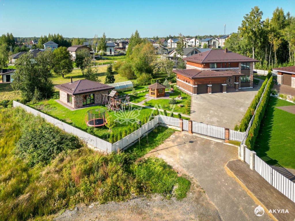 На участке в едином стиле с домом построена просторная баня на дровах с комнатой отдыха, финский гриль-домик, в котором круглогодично можно разместиться компанией до 8 человек и уютно у костра провести вечер, а так же детская площадка, теплица и хоз блок с мастерской.