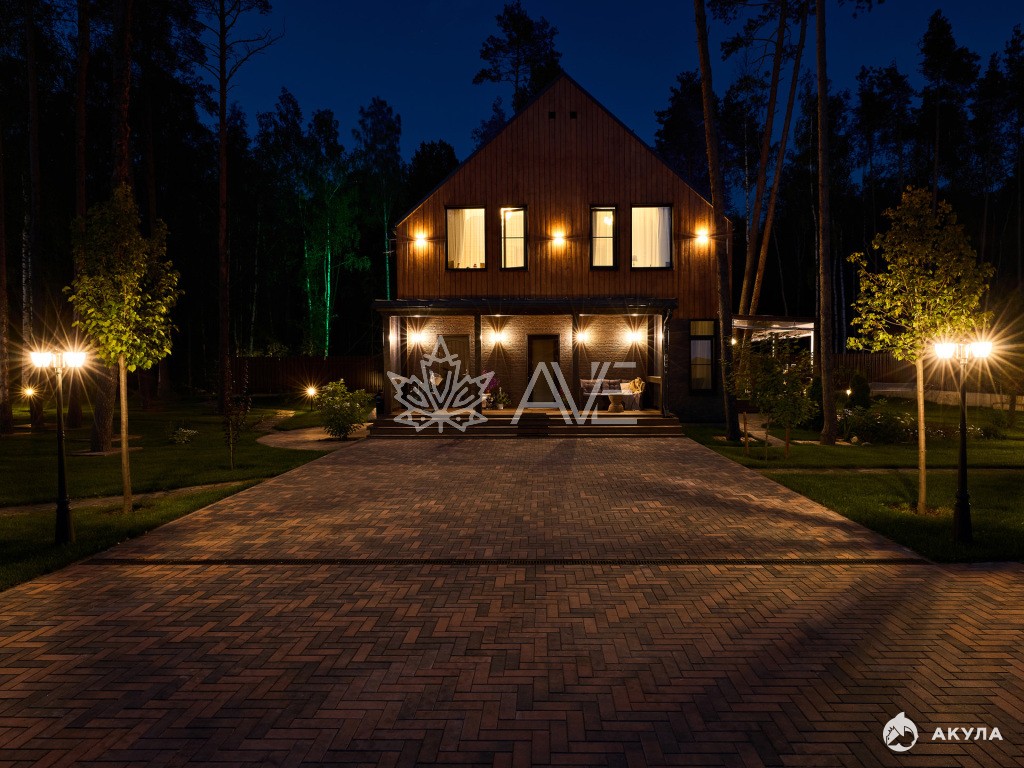Главный акцент — собственный пруд, оформленный в естественном стиле, куда прилетают утки и где плавают караси. Он не только декоративен, но и функционален: скамеечки на берегу, мягкая подсветка деревьев в вечерние часы превращают его в центр медитативного отдыха.