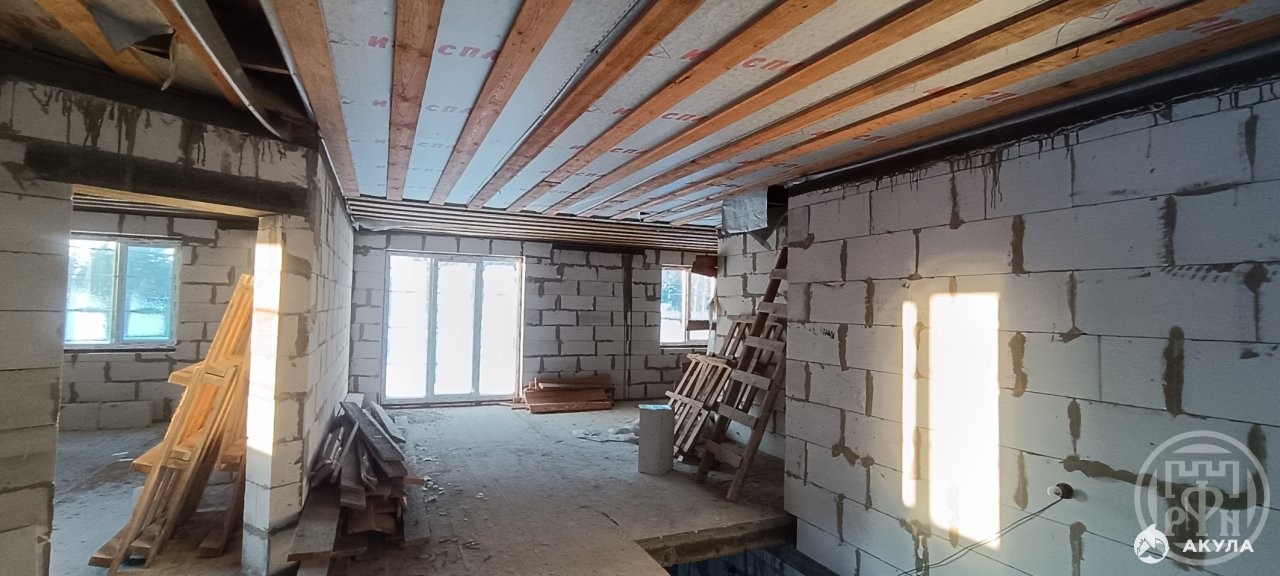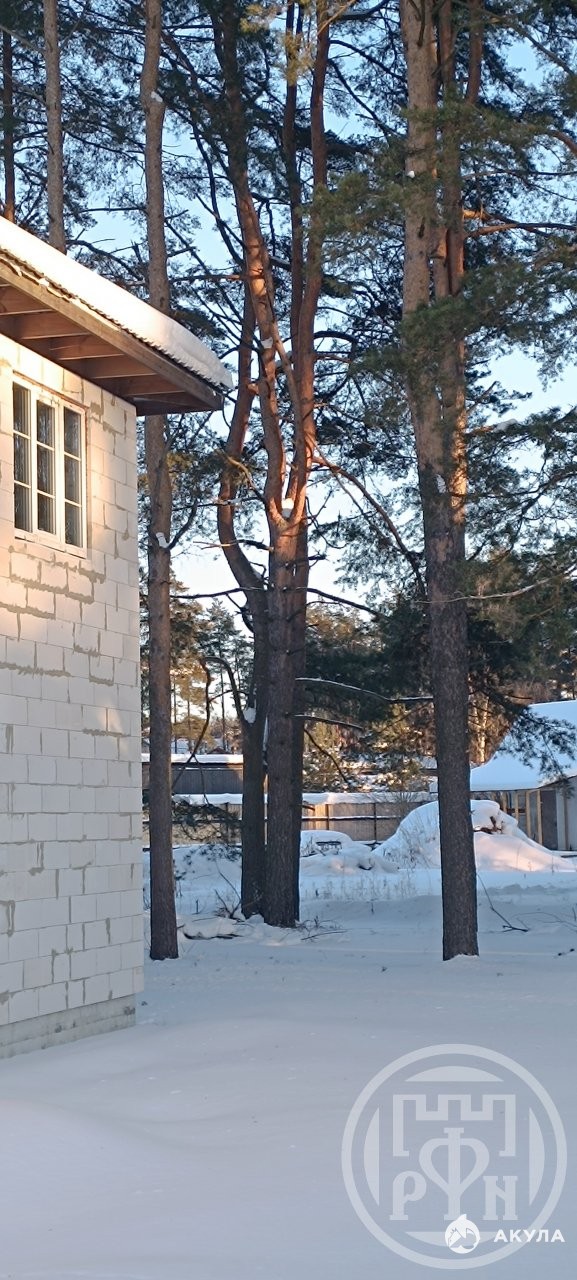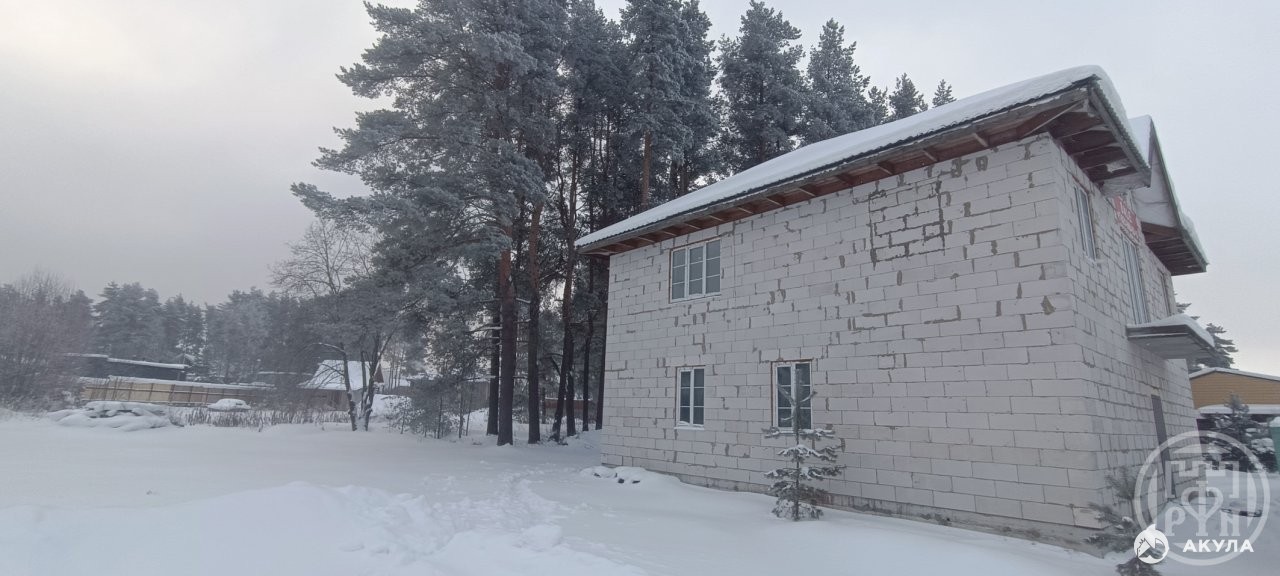 На участке 7, 5 соток построен двухэтажный дом 235 м2 из пенобетона. Есть третий мансардный этаж, площадь которого не входит общую площадь дома. Дом без отделки.