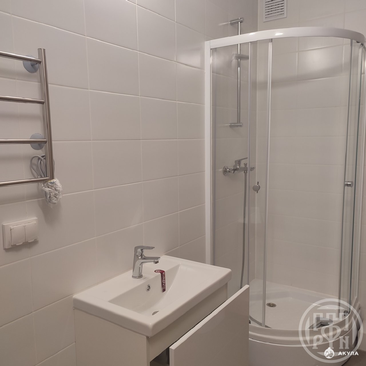 Светлая, теплая, не угловая. Аккуратный ремонт от застройщика: светлые стены (можно под покраску), много розеток для бытовых приборов, вентиляция, радиаторы отопления с регулировкой, ламинат. В совмещенном санузле установлена душевая кабина, электрический полотенцесушитель с 4 режимами, раковина с тумбой. Стены и пол выложены плиткой.