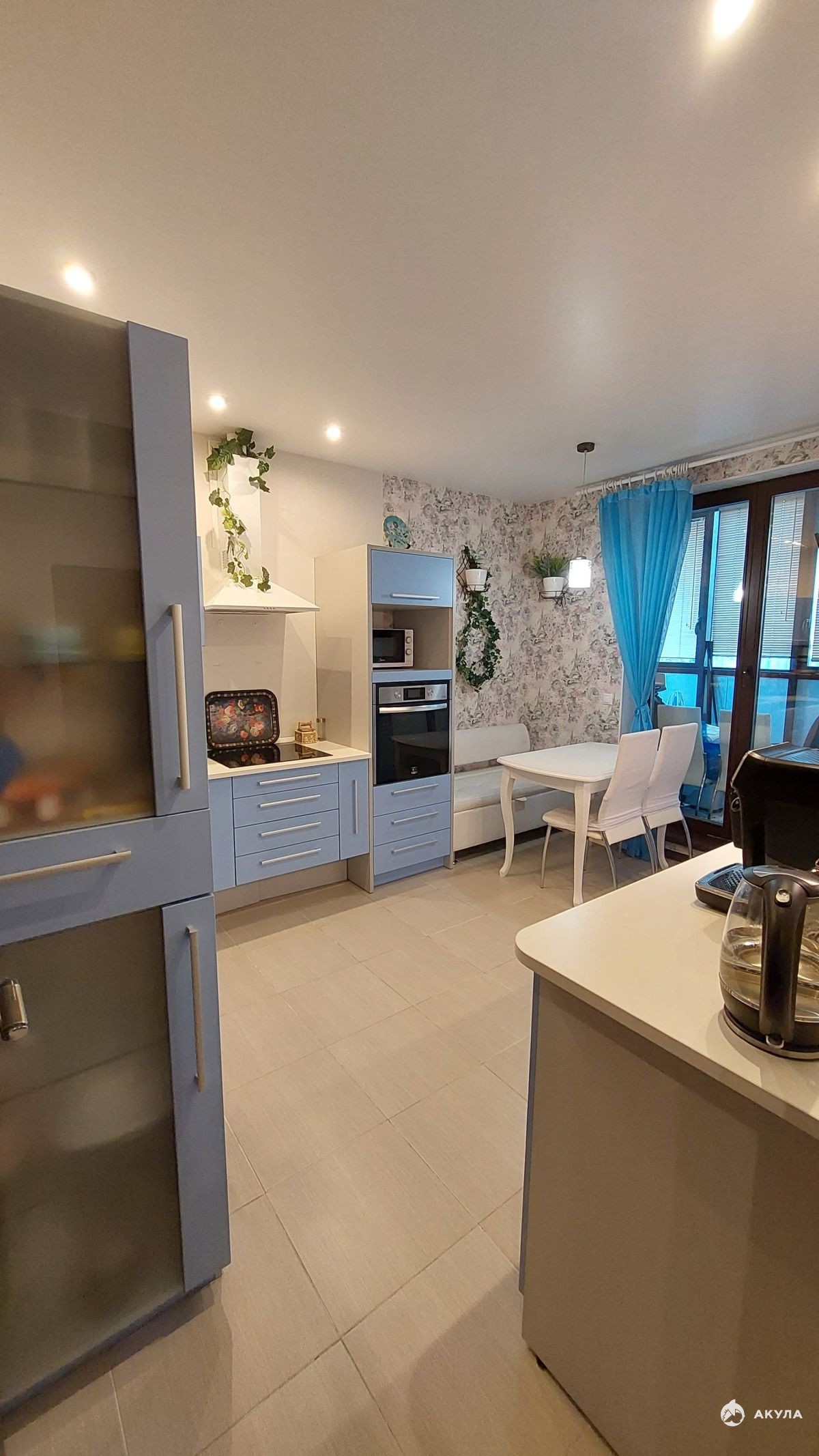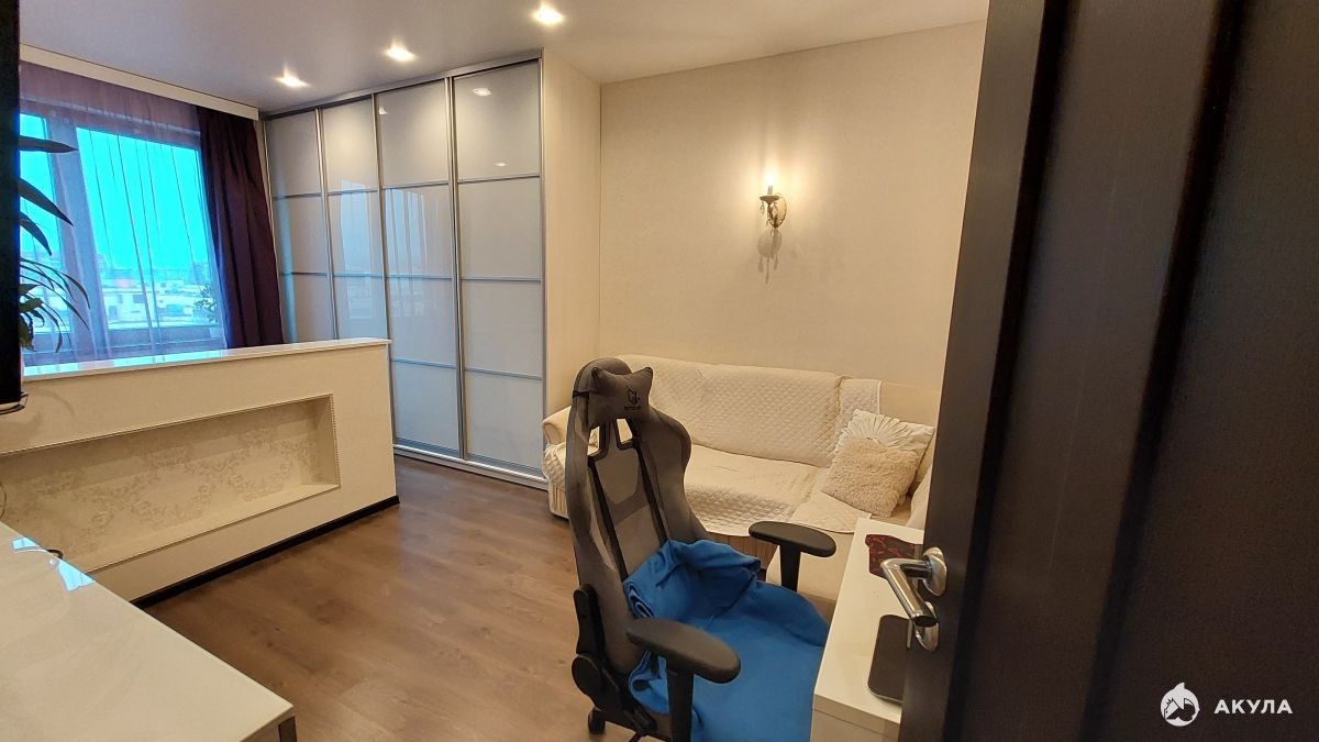 Квартира была отремонтирована с использованием современных материалов и технологий. В квартире остается необходимая мебель: современный кухонный гарнитур со встроенной бытовой техникой и встроенный шкаф-купе в комнате.
