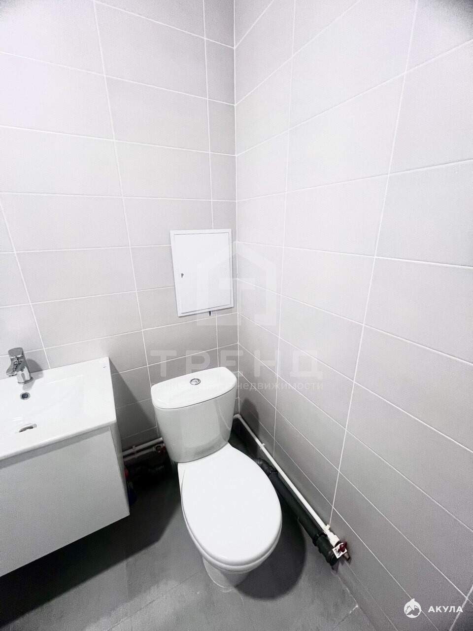 Ванная комната полностью готова к использованию: плитка на полу и стенах, выведены розетки и коммуникации под бытовую технику.