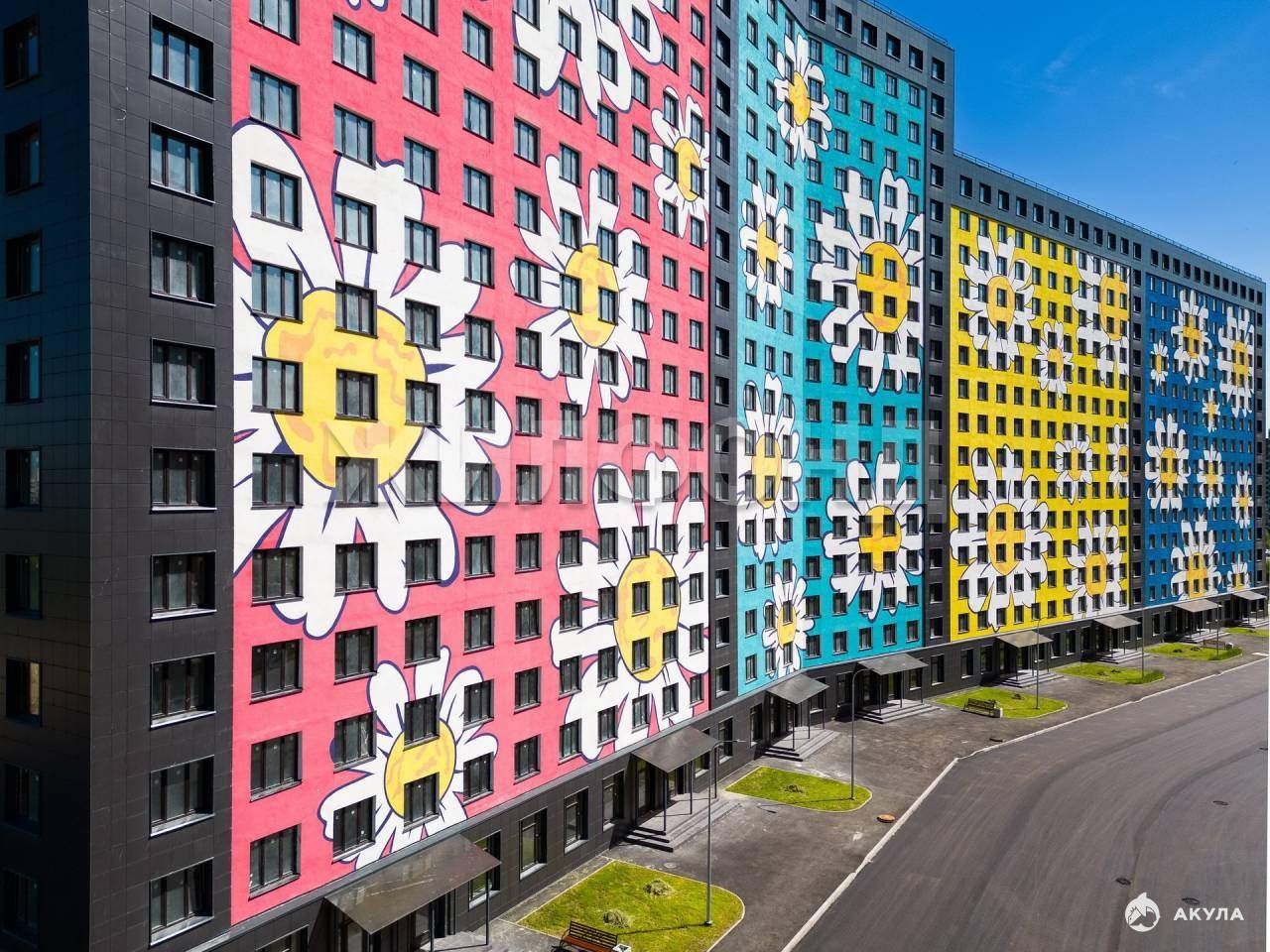 И фишка- на фасаде одного из домов - гигантская ромашка, признанная рекордом России- картина занимает 13 этажей в высоту, 318 кв. м площади. Это просто символ, который вас будет выделять визуально.