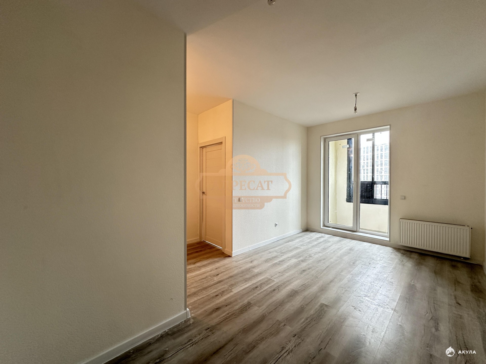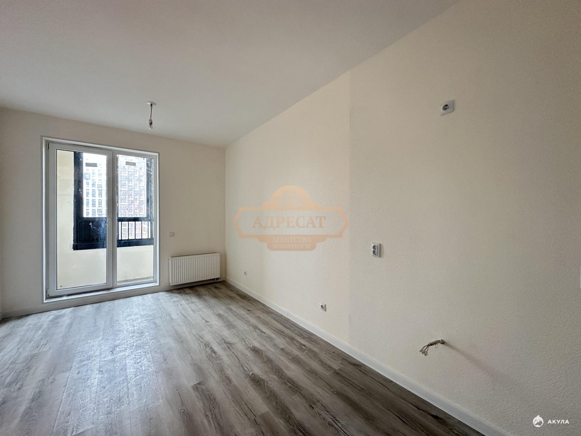 В квартире выполнена отделка от застройщика в светлых тонах. На полу ламинат, на стенах обои под покраску. В совмещённом санузле установлена ванная, унитаз, тумба с раковиной, на стенах и полу кафель. Застеклёная лоджия. Счетчики воды и тепла вынесены в общий коридор. 4 лифта. Закрытый от машин двор с площадками. На первом этаже большая колясочная, где можно хранить велосипеды, коляски, самокаты и прочее. Квартира расположена на 10 этаже современного многоквартирного дома.