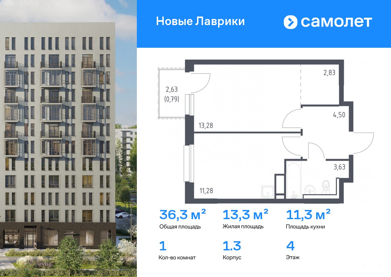 Предлагается 1-комнатная квартира комфорт-класса 36, 31 кв.м в корпусе 1.3 на 4 этаже, в ЖК «Новые Лаврики»