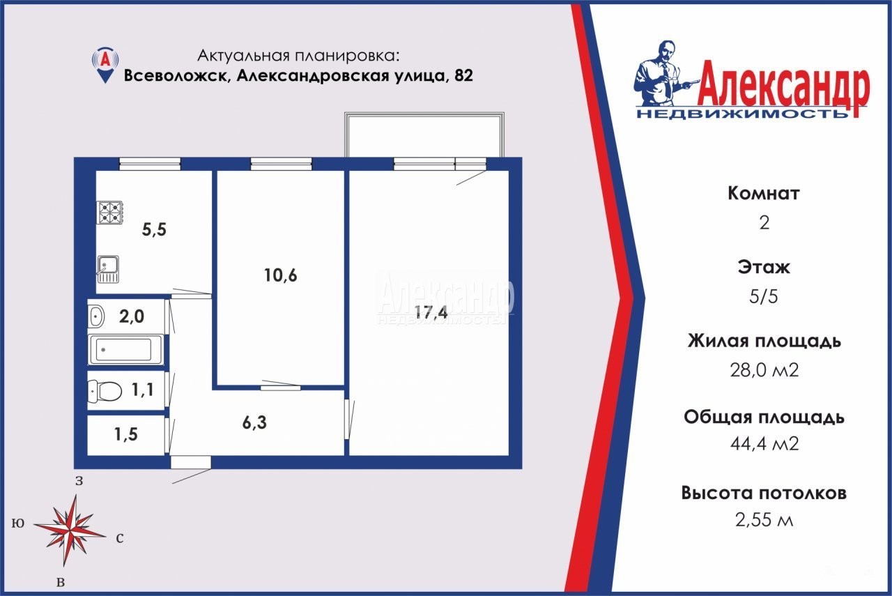 1691603 Предлагается к продаже 2 к.кв в центре Всеволожска, общ.пл. 44, 4 кв.м, комнаты 17, 4+10, 6 кв.м, кухня 5, 5 кв.м, 5/5 эт., дом панельный, чистая парадная, есть балкон, стеклопакеты, требуется ремонт, прямая продажа, свободна, никто не прописан. Рядом вся инфраструктура, рынок, сетевые магазины. Хорошее сообщение с СПб. Возможен торг!