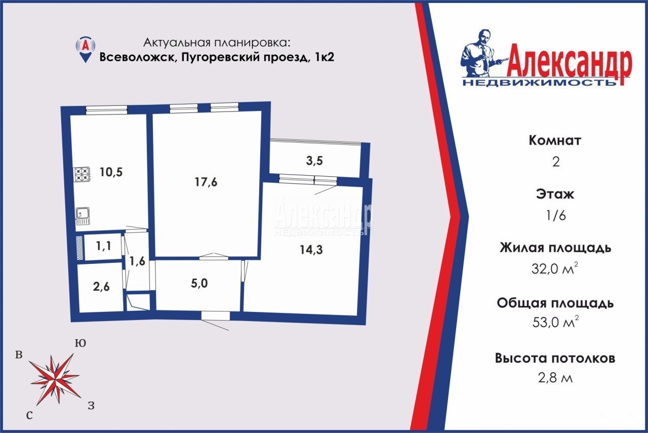 Отличная планировка квартиры, две просторные светлые комнаты(17 и 15 кв.м), большая кухня (10, 8 кв.м) и просторная застекленная лоджия с видом на зеленый двор (4 кв.м).