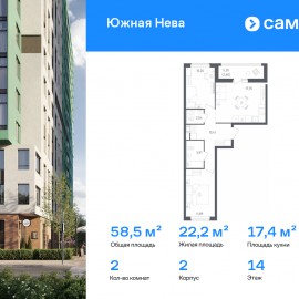 Строим кварталы для жизни с заботой о будущем. Предлагается 2-комнатная квартира комфорт-класса 55, 62 кв.м в корпусе 2 на 14 этаже, в ЖК «Южная Нева» Квартира с чистовой отделкой. Доступность дополнительных опций уточняйте у застройщика. Приобрести квартиру возможно по...