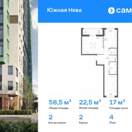 Строим кварталы для жизни с заботой о будущем. Предлагается 2-комнатная квартира комфорт-класса 58, 42 кв.м в корпусе 2 на 11 этаже, в ЖК «Южная Нева» Квартира без отделки. Доступность опции «отделка» и возможность комплектации мебелью и декором уточняйте у...