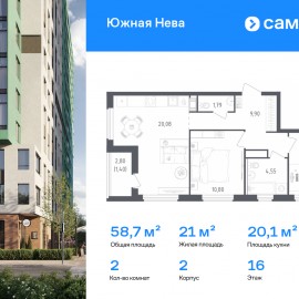 Строим кварталы для жизни с заботой о будущем. Предлагается 2-комнатная квартира комфорт-класса 58, 68 кв.м в корпусе 2 на 16 этаже, в ЖК «Южная Нева» Квартира с чистовой отделкой. Доступность дополнительных опций уточняйте у застройщика. Приобрести квартиру возможно по...