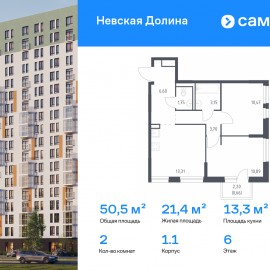 Строим кварталы для жизни с заботой о будущем. Предлагается 2-комнатная квартира комфорт-класса 50, 53 кв.м в корпусе 1.1 на 6 этаже, в ЖК «Невская Долина» Квартира с чистовой отделкой. Доступность дополнительных опций уточняйте у застройщика. Приобрести квартиру возможно по...