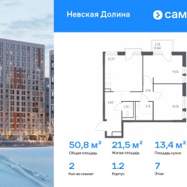 Строим кварталы для жизни с заботой о будущем. Предлагается 2-комнатная квартира комфорт-класса 50, 11 кв.м в корпусе 1.2 на 16 этаже, в ЖК «Невская Долина» Квартира без отделки. Доступность опции «отделка» и возможность комплектации мебелью и декором уточняйте у...