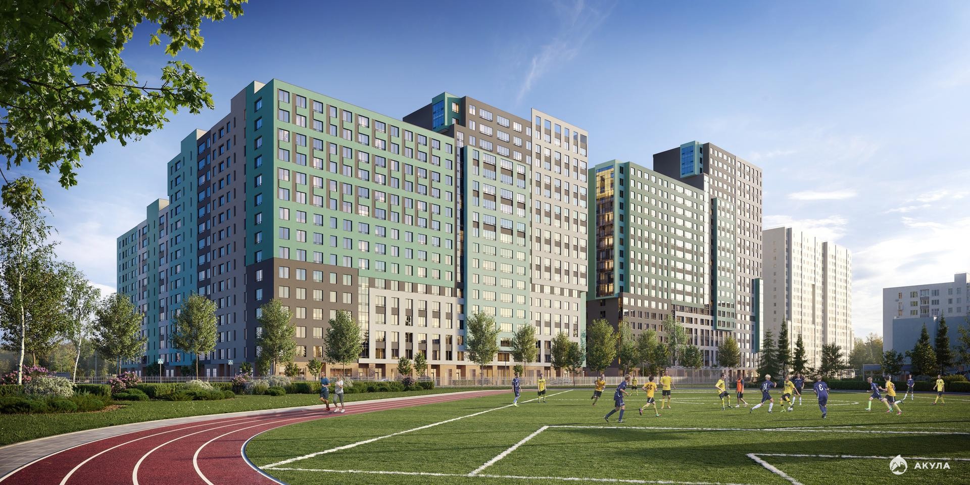 Комплекс состоит из 11 монолитных домов высотой от 12 до 23 этажей с разноцветными фасадами и панорамными балконами.