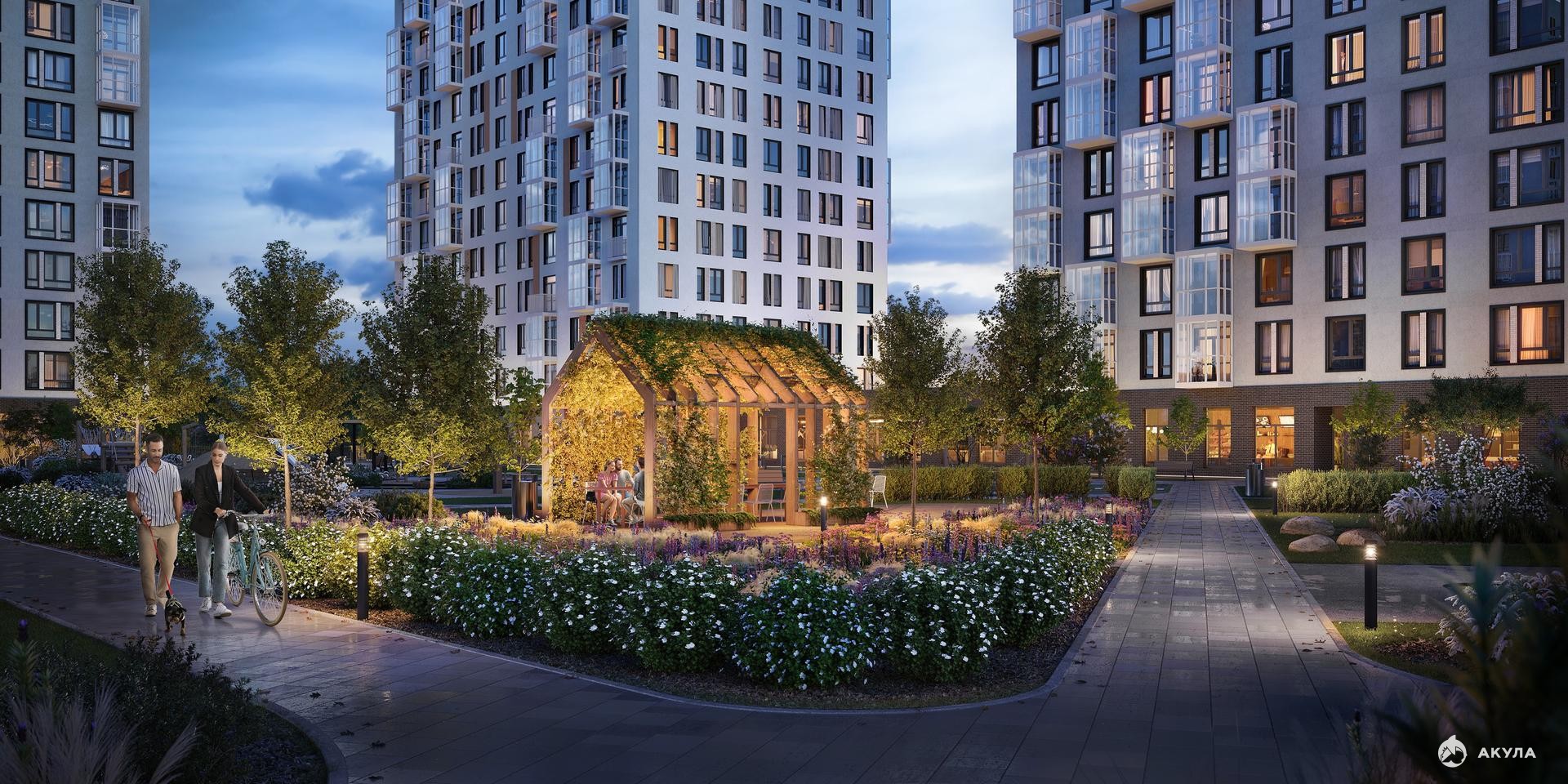Скоро во дворе комплекса построят 4 детских сада и 2 школы. Рядом уже есть магазины «Дикси», «Магнит», пункты выдачи и аптеки. На первых этажах будут кафе и минимаркеты, откроется медицинский центр и физкультурно-оздоровительный комплекс.