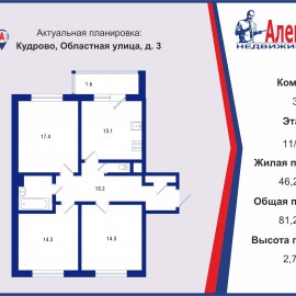 1702982 Продам 3 ккв в Кудрово в ЖК "Новый Оккервиль". Два взрослых собственника, владеют квартирой с 2018 года. Долгов нет, обременений нет. Легкая встречная покупка. Преимущества квартиры: - просторная( общая площадь 81, 2 кв м) - все комнаты изолированные и у каждого будет своё...